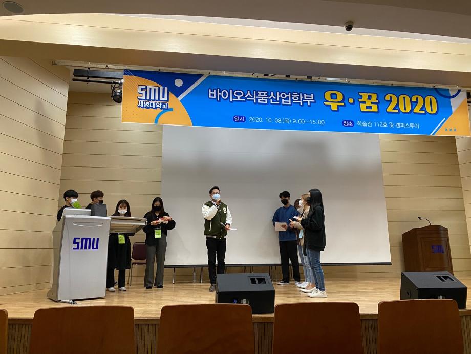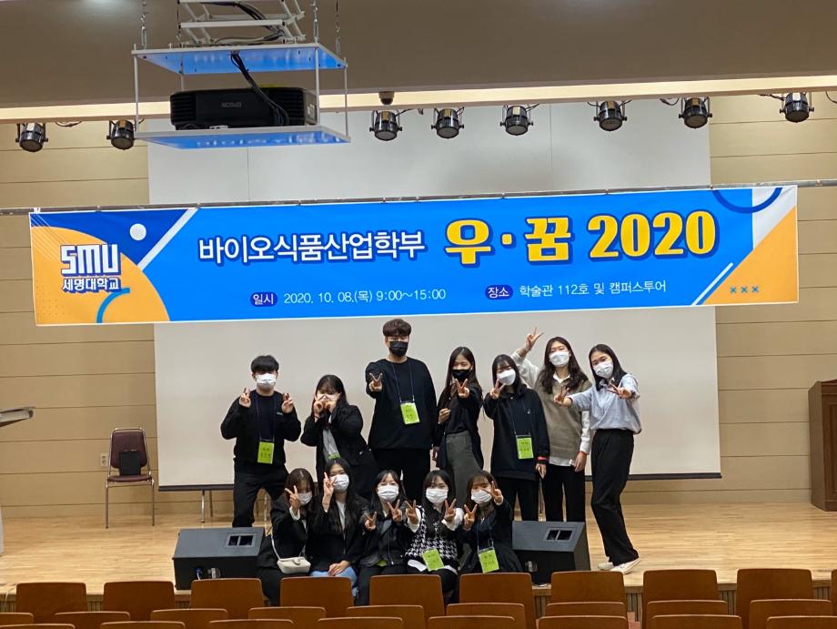 본문 시작 홈으로 커뮤니티 학부소개 진로·취업 교육과정 커뮤니티 대학원 입학상담 홈페이지가이드 갤러리 공지사항 문의게시판 학생회 전공동아리 동문회 갤러리 전공자료실 Youtube Instagram Facebook Blog 갤러리 페이스북 트위터 프린트 바이오식품산업학부 우·꿈 2020 바이오식품산업학부 6643 2020-10-12 2020년 10월 08일(목) 학술관 112호에서 진행된 바이오식품산업학부 우·꿈 2020에 학생회 임원 및 신입생 43명이 참여했으며 학과소개,영화퀴즈,런닝맨을 진행하였습니다. "우꿈"은 "우리꿈꿔요"의 약자입니다. 2020년 중국발 우한폐렴으로 학교에 나오지 못했던 1학년들과 교수님들 그리고 학회 임원들이 함께한 뜻깊은 자리였습니다. 목록 이전바이오식품산업학부 학생참여형 지역연계 연구(장수밥상) 다음 바이오식품산업학부 2021 세명발효식품에듀센터 담당부서 : 바이오식품산업학부 담당자 : - 연락처 : 043-649-1431 최종수정일 : 2024-10-26 만족도조사 만족도 조사 이 페이지에서 제공하는 정보에 대하여 만족하시나요? 매우만족 만족 보통 불만족 매우불만족