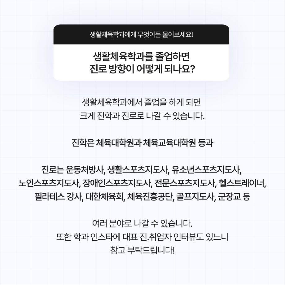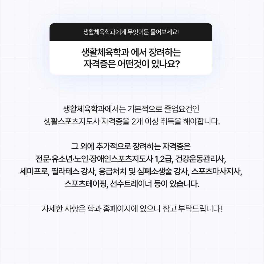 본문 시작 홈으로 커뮤니티SNS 학과소개 진로취업사례 입학안내 교육과정 커뮤니티SNS 홈페이지가이드 학과행사갤러리 학과공지 열린정보SNS 학과동아리 학과행사갤러리 학과MOU 학생회조직도 학과연혁 동문회조직도 학과행사갤러리 페이스북 트위터 프린트 생활체육학과 Q&A 생활체육학과 2511 2024-08-29 생활체육학과 Q&A 목록 이전2024학년도 학생회 다음 2024학년도 생활체육학과 MT 담당부서 : 생활체육학과 담당자 : - 연락처 : 043-469-1289 최종수정일 : 2024-10-26 만족도조사 만족도 조사 이 페이지에서 제공하는 정보에 대하여 만족하시나요? 매우만족 만족 보통 불만족 매우불만족