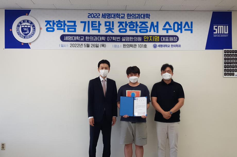 본문 시작 홈으로 대학소식 대학소개 교수소개 대학과정 커뮤니티 대학원 대학소식 홈페이지가이드 포토갤러리 학과공지 포토갤러리 발전기금 위원회 관련사이트 포토갤러리 페이스북 트위터 프린트 2022 세명대학교 한의과대학 장학금 기탁 및 장학증서 수여식(안지명 장학금 수여식) 한의과대학 3348 2022-05-26 2022 세명대학교 한의과대학 장학금 기탁 및 장학증서 수여식 (안지명 장학금 수여식) 일시 : 2022년 5월 26일 목요일 시간 : 오후 4시 30분 장소 : 한의학관 101호 한의과대학 학장실 목록 이전2022학년도 제6회 총장배 구기종목대회 - 여자피구 준결승 영상 다음 2022학년도 제6회 총장배 구기종목대회 시상식 담당부서 : 한의과대학 담당자 : - 연락처 : 043-649-1701 최종수정일 : 2024-10-26 만족도조사 만족도 조사 이 페이지에서 제공하는 정보에 대하여 만족하시나요? 매우만족 만족 보통 불만족 매우불만족