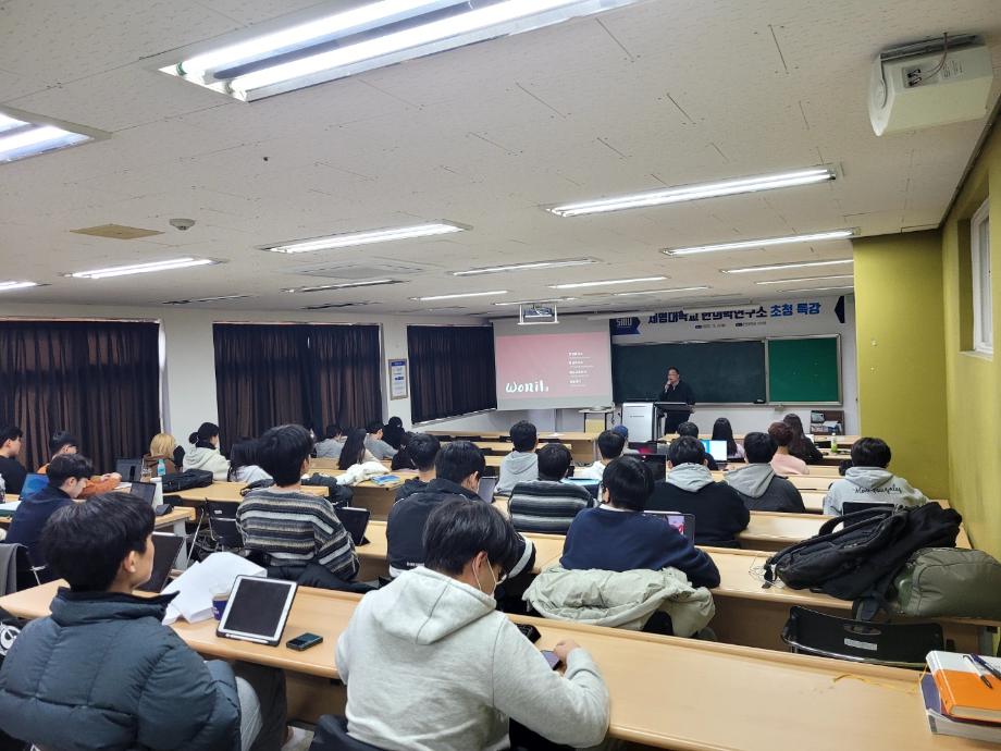 본문 시작 홈으로 대학소식 대학소개 교수소개 대학과정 커뮤니티 대학원 대학소식 홈페이지가이드 포토갤러리 학과공지 포토갤러리 발전기금 위원회 관련사이트 포토갤러리 페이스북 트위터 프린트 [한의학연구소] 초청강연회 특강 한의과대학 5291 2022-11-28 [한의학연구소] 초청강연회 특강 일 시 : 2022.11.21(월요일) 시 간 : 오후 1시 30분 ~ 오후 3시 20분 장 소 : 한의학관 105호 예1 강의실 초 청 강 사 : 한제근 대표님(원일바이오/원일홀딩스) 목록 이전세명한의 축구동아리 '활인', 제1회 전국예비의료인축구대회 3위 다음 2022학년도 연구역량 강화 세미나 담당부서 : 한의과대학 담당자 : - 연락처 : 043-649-1701 최종수정일 : 2024-10-26 만족도조사 만족도 조사 이 페이지에서 제공하는 정보에 대하여 만족하시나요? 매우만족 만족 보통 불만족 매우불만족