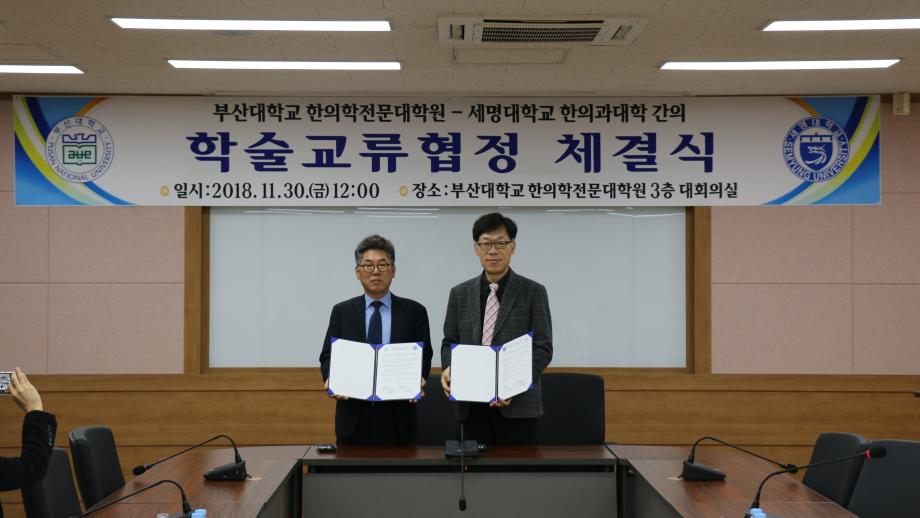 본문 시작 홈으로 대학소식 대학소개 교수소개 대학과정 커뮤니티 대학원 대학소식 홈페이지가이드 포토갤러리 학과공지 포토갤러리 발전기금 위원회 관련사이트 포토갤러리 페이스북 트위터 프린트 세명대학교 한의과대학- 부산대학교 한의학전문대학원 MOU 체결 한의과대학 7178 2018-12-05 세명대학교 한의과대학(학장 김호현)은 2018년 11월 30일 부산대학교 한의학전문대학원과 한의학 교육의 협력과 발전을 위해 상호협력협약을 체결하였다. 두 기관은 상호협력협약을 통해 한의학 임상교육에 필요한 임상실습지침서와 임상실습 프로그램을 연구・개발・시행・평가하며, 표준화환자를 훈련・시행・평가하며, 원활한 임상실습을 위해 상호 파견과 참관하는 분야에서 공동의 노력을 다함으로써 한의학 임상교육 발전에 큰 기여를 하리라 기대하고 있다. 목록 이전2018년 미니체육대회 다음 2018학년도 학위수여식 담당부서 : 한의과대학 담당자 : - 연락처 : 043-649-1701 최종수정일 : 2024-10-26 만족도조사 만족도 조사 이 페이지에서 제공하는 정보에 대하여 만족하시나요? 매우만족 만족 보통 불만족 매우불만족