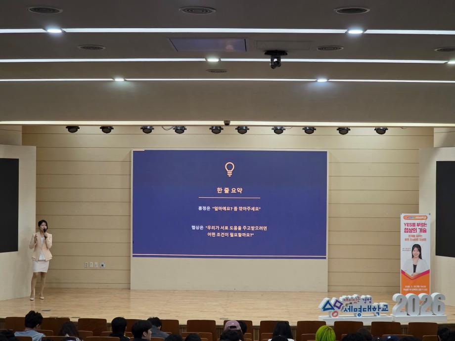 본문 시작 홈으로 커뮤니티 게시판 대학소개 교수소개 교양교육과정 교양교육 프로그램 커뮤니티 게시판 입학안내 홈페이지가이드 자료실 공지사항 자료실 학생 커뮤니티 취업정보 CHARM리더십특강 CHARM리더십특강 CHARM커뮤니케이션 제천문화탐방과 스토리텔링 CHARM인문학콘서트~2018 향토문화탐방~2018 특강 및 기타 행사 포토 갤러리 CHARM리더십특강 페이스북 트위터 프린트 2026-1학기 CHARM리더십특강 3주차 강의 교양대학 122 2026-03-19 2026-1학기 CHARM리더십특강 3주차 강의 송효지강사님_yes를 부르는 협상의 기술: 관계를 지키는 휴먼 인사이트 협상법 목록 이전2026-1학기 CHARM리더십특강 2주차 강의 다음 2026-1학기 CHARM리더십특강 4주차 강의 담당부서 : 교양대학 담당자 : - 연락처 : 043-649-7065 최종수정일 : 2024-10-26 만족도조사 만족도 조사 이 페이지에서 제공하는 정보에 대하여 만족하시나요? 매우만족 만족 보통 불만족 매우불만족