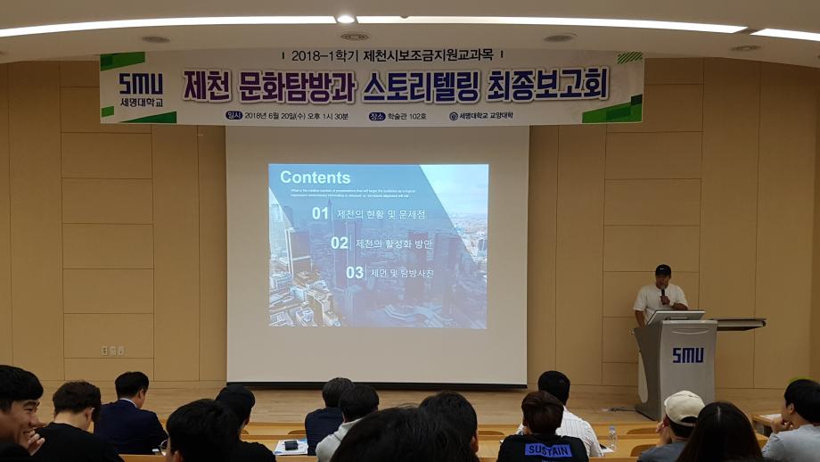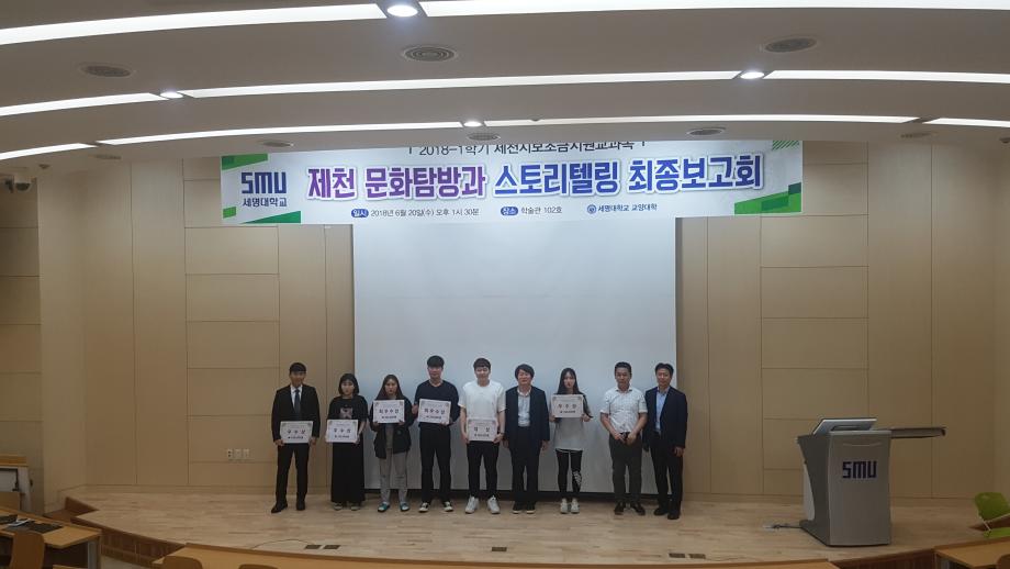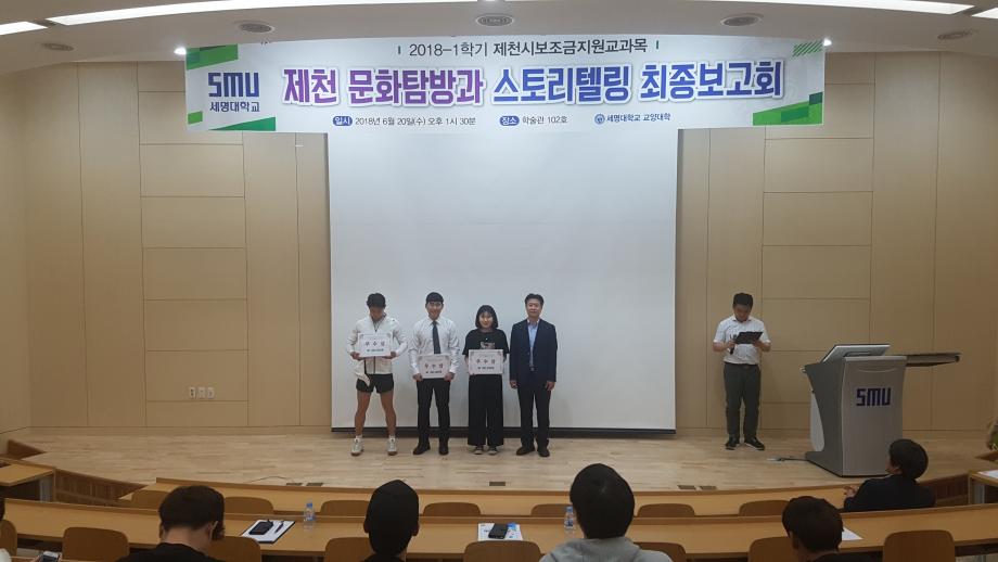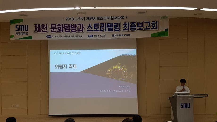 본문 시작 홈으로 커뮤니티 게시판 대학소개 교수소개 교양교육과정 교양교육 프로그램 커뮤니티 게시판 입학안내 홈페이지가이드 자료실 공지사항 자료실 학생 커뮤니티 취업정보 제천문화탐방과 스토리텔링 CHARM리더십특강 CHARM커뮤니케이션 제천문화탐방과 스토리텔링 CHARM인문학콘서트~2018 향토문화탐방~2018 특강 및 기타 행사 포토 갤러리 제천문화탐방과 스토리텔링 페이스북 트위터 프린트 2018-1학기 제천문화탐방과 스토리텔링 프레젠테이션 발표 및 수여식 교양대학 7257 2018-06-20 2018-1학기 제천문화탐방과 스토리텔링 프레젠테이션 발표 및 수여식 일시 : 2018년 6월 20일 13:30, 학술관 102호 대상 : 5조 최우수상 : 7조, 3조 우수상 : 8조, 9조, 2조 목록 이전2018-1학기 제천문화탐방과 스토리텔링 (5월31일) - 제천한방바이오엑스포공원 다음 2018-2학기 제천문화탐방과 스토리텔링 (9월 19일) -교동 민화 마을과 내토 전통 시장 담당부서 : 교양대학 담당자 : - 연락처 : 043-649-7065 최종수정일 : 2024-10-26 만족도조사 만족도 조사 이 페이지에서 제공하는 정보에 대하여 만족하시나요? 매우만족 만족 보통 불만족 매우불만족