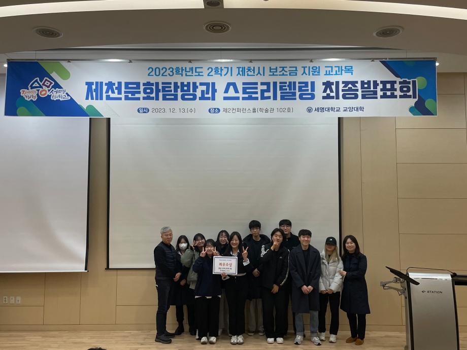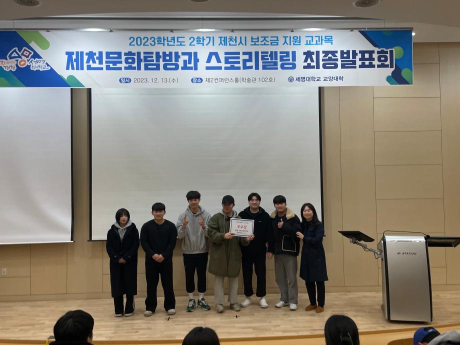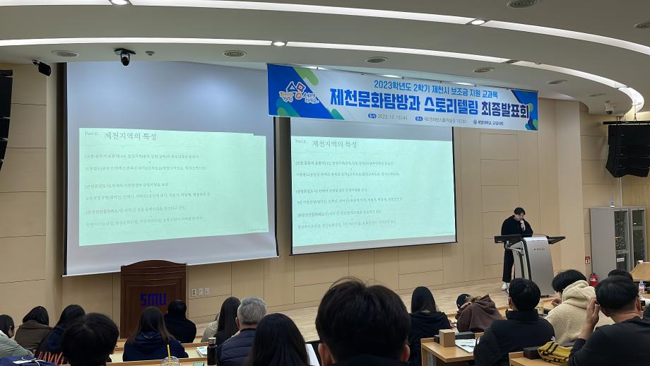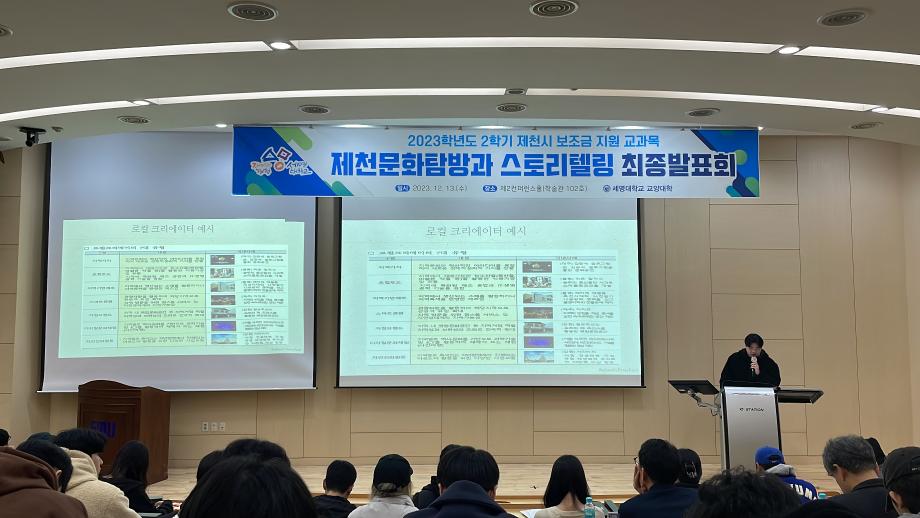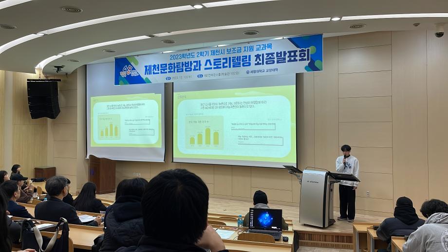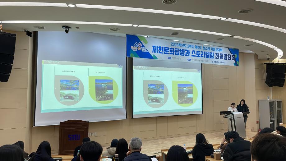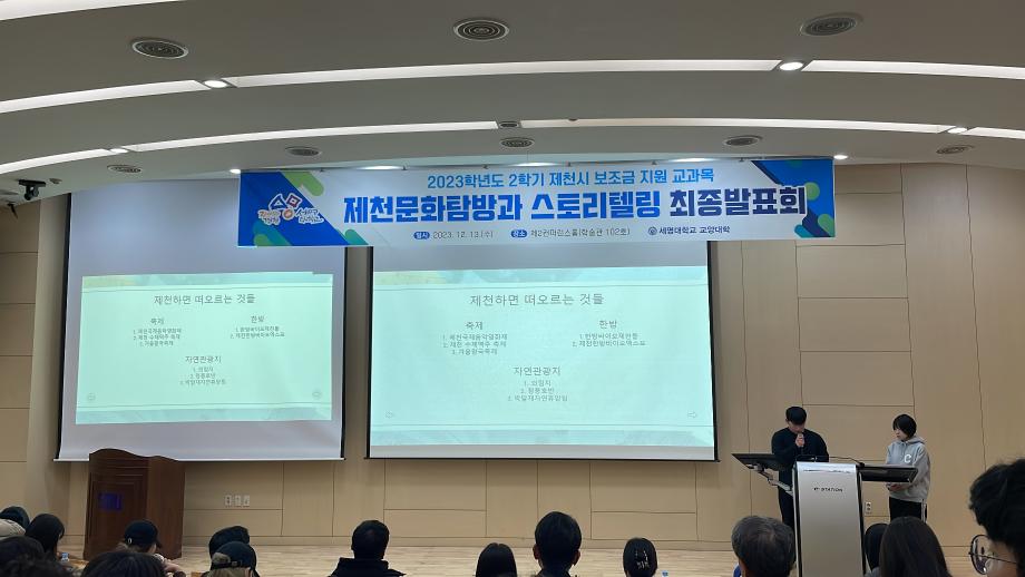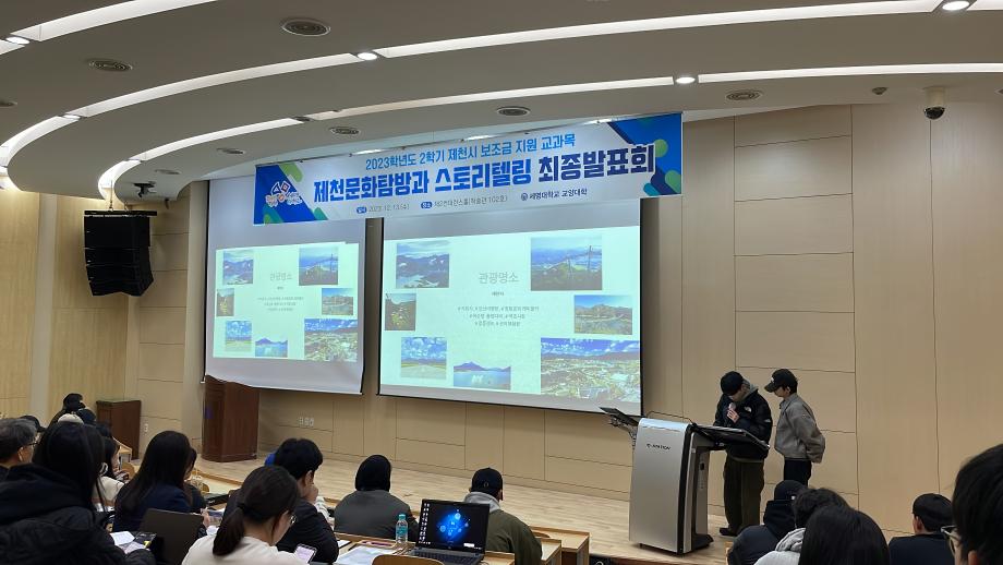 본문 시작 홈으로 커뮤니티 게시판 대학소개 교수소개 교양교육과정 교양교육 프로그램 커뮤니티 게시판 입학안내 홈페이지가이드 자료실 공지사항 자료실 학생 커뮤니티 취업정보 제천문화탐방과 스토리텔링 CHARM리더십특강 CHARM커뮤니케이션 제천문화탐방과 스토리텔링 CHARM인문학콘서트~2018 향토문화탐방~2018 특강 및 기타 행사 포토 갤러리 제천문화탐방과 스토리텔링 페이스북 트위터 프린트 2023-2학기 제천문화탐방과 스토리텔링 프레젠테이션 발표 및 수여식 교양대학 2814 2023-12-13 2023-2학기 제천문화탐방과 스토리텔링 프레젠테이션 발표 및 수여식 2023년 12월 13일(수) 13:30~15:30 / 학술관 102호 목록 이전2023-2학기 제천문화탐방과스토리텔링 4차탐방 다음 2024-1학기 제천문화탐방과스토리텔링 1주차 강의 담당부서 : 교양대학 담당자 : - 연락처 : 043-649-7065 최종수정일 : 2024-10-26 만족도조사 만족도 조사 이 페이지에서 제공하는 정보에 대하여 만족하시나요? 매우만족 만족 보통 불만족 매우불만족