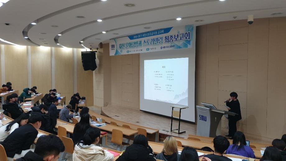 본문 시작 홈으로 커뮤니티 게시판 대학소개 교수소개 교양교육과정 교양교육 프로그램 커뮤니티 게시판 입학안내 홈페이지가이드 자료실 공지사항 자료실 학생 커뮤니티 취업정보 제천문화탐방과 스토리텔링 CHARM리더십특강 CHARM커뮤니케이션 제천문화탐방과 스토리텔링 CHARM인문학콘서트~2018 향토문화탐방~2018 특강 및 기타 행사 포토 갤러리 제천문화탐방과 스토리텔링 페이스북 트위터 프린트 2019-2학기 제천문화탐방과 스토리텔링 프레젠테이션 발표 및 수여식 교양대학 10076 2019-12-20 2019-2학기 제천문화탐방과 스토리텔링 프레젠테이션 발표 및 수여식 2019년 12월 18일(수) 13:30~15:30 / 학술관 102호 목록 이전2019-2학기 제천문화탐방과스토리텔링 4차 탐방(12월 4일) - 한방엑스포공원 다음 2020-1학기 제천문화탐방과 스토리테링 1-6주차 강의 담당부서 : 교양대학 담당자 : - 연락처 : 043-649-7065 최종수정일 : 2024-10-26 만족도조사 만족도 조사 이 페이지에서 제공하는 정보에 대하여 만족하시나요? 매우만족 만족 보통 불만족 매우불만족