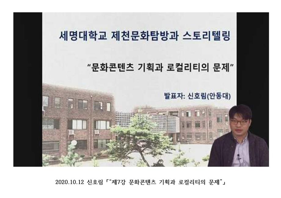 본문 시작 홈으로 커뮤니티 게시판 대학소개 교수소개 교양교육과정 교양교육 프로그램 커뮤니티 게시판 입학안내 홈페이지가이드 자료실 공지사항 자료실 학생 커뮤니티 취업정보 제천문화탐방과 스토리텔링 CHARM리더십특강 CHARM커뮤니케이션 제천문화탐방과 스토리텔링 CHARM인문학콘서트~2018 향토문화탐방~2018 특강 및 기타 행사 포토 갤러리 제천문화탐방과 스토리텔링 페이스북 트위터 프린트 2020-2학기 제천문화탐방과 스토리텔링 1-7주차 강의 교양대학 7643 2020-10-13 1주차- 이혜진_오리엔테이션&지역문화의 공공적 의미와 제천의 문화콘텐츠 2주차- 이혜진_지역문화콘텐츠와스토리텔링 3주차- 이혜진_제천의 여행문화와 레저 4주차- 최자운_제천의 축제와 지역문화 5주차- 구완회_제천의 역사와 의병 6주차- 장승구_제천의 학문과 사상 7주차- 신호림_문화콘텐츠기획과 로컬리티의 문제 목록 이전2020-1학기 제천문화탐방과 스토리테링 7-11주차 강의 다음 2020 -2학기 제천문화탐방과 스토리텔링 9-14주차 강의 담당부서 : 교양대학 담당자 : - 연락처 : 043-649-7065 최종수정일 : 2024-10-26 만족도조사 만족도 조사 이 페이지에서 제공하는 정보에 대하여 만족하시나요? 매우만족 만족 보통 불만족 매우불만족