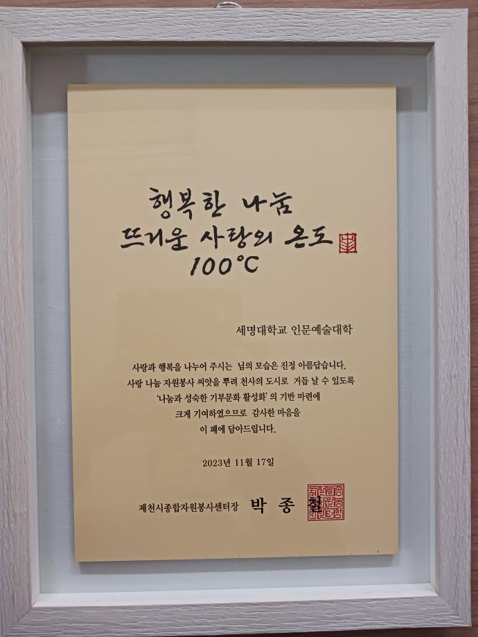 본문 시작 홈으로 커뮤니티 대학소개 학과소개 입학안내 커뮤니티 홈페이지가이드 사진 자료실 대학소식 학과소식 자료실 사진 자료실 동영상 자료실 사진 자료실 페이스북 트위터 프린트 인문예술대학 제천시자원봉사센터장 감사패 수상 인문예술대학 2800 2023-11-16 인문예술대학 제천시자원봉사센터장 감사패 수상 목록 이전모듈형 교육과정 위원회 3차 회의 다음 콘텐츠스쿨 2023 창작물 쇼케이스 및 2024 비전 발표회 성황리 종료 담당부서 : 인문예술대학 담당자 : - 연락처 : 043-649-7402 최종수정일 : 2024-10-26 만족도조사 만족도 조사 이 페이지에서 제공하는 정보에 대하여 만족하시나요? 매우만족 만족 보통 불만족 매우불만족