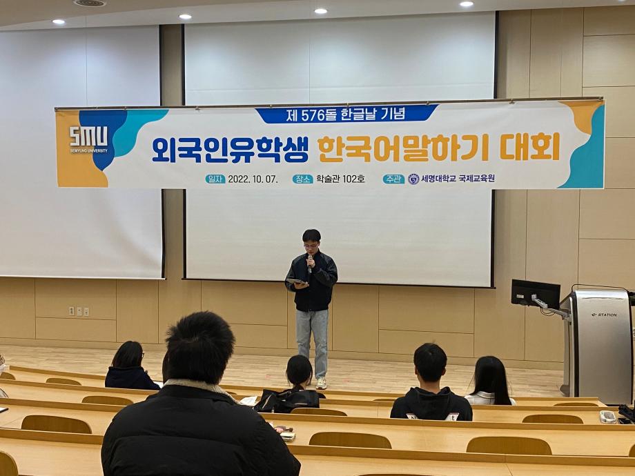 본문 시작 2022-외국인 유학생 한국어 말하기 대회 국제교육원 2337 2022-10-07 2022-외국인 유학생 한국어 말하기 대회 목록 이전2022-여름학기 종강 수료식 다음 2022-외국인 유학생 한식요리체험 담당부서 : 국제교육원 담당자 : - 연락처 : 043-649-1185 최종수정일 : 2024-10-26 만족도조사 만족도 조사 이 페이지에서 제공하는 정보에 대하여 만족하시나요? 매우만족 만족 보통 불만족 매우불만족