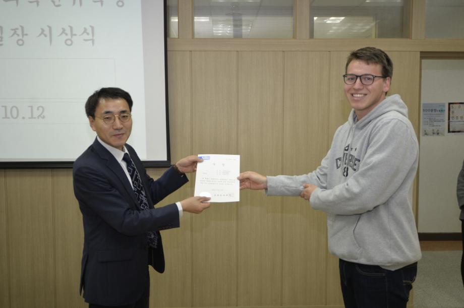 본문 시작 2016-2학기 외국인유학생 한글 백일장 시상식 김교원 5307 2016-11-22 2016-2학기 외국인유학생 한글 백일장 시상식 목록 이전2016-2학기 외국인유학생 한글 백일장 다음 2016-2학기 외국인유학생 한글 백일장 시상식-2 담당부서 : 국제교육원 담당자 : - 연락처 : 043-649-1185 최종수정일 : 2024-10-26 만족도조사 만족도 조사 이 페이지에서 제공하는 정보에 대하여 만족하시나요? 매우만족 만족 보통 불만족 매우불만족