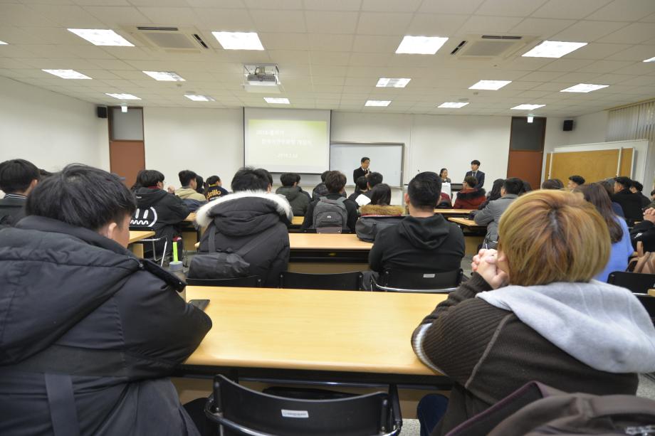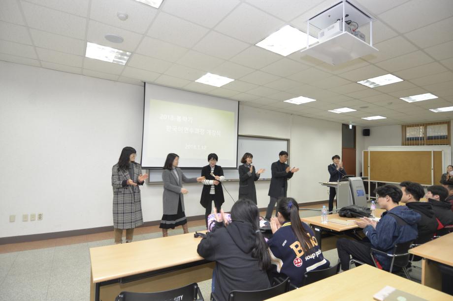 본문 시작 2018 봄학기 한국어 연수과정 개강식 국제교육원 5482 2018-03-12 03월 12일 국제교육원에서는 2018 봄학기 개강식을 진행하였습니다. 학생들의 한층 밝아진 표정을 통해서 성큼 다가온 봄기운을 느낄 수 있었습니다. 목록 이전2017년 겨울학기 한국어 연수과정 수료식 다음 2018-1 외국인 유학생 조기적응 프로그램 담당부서 : 국제교육원 담당자 : - 연락처 : 043-649-1185 최종수정일 : 2024-10-26 만족도조사 만족도 조사 이 페이지에서 제공하는 정보에 대하여 만족하시나요? 매우만족 만족 보통 불만족 매우불만족