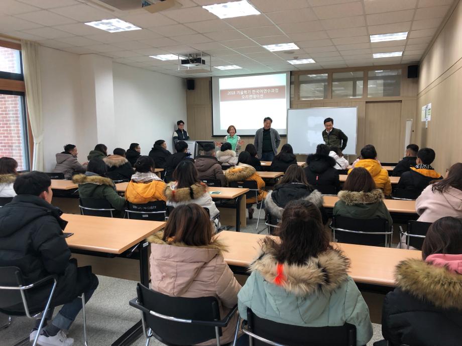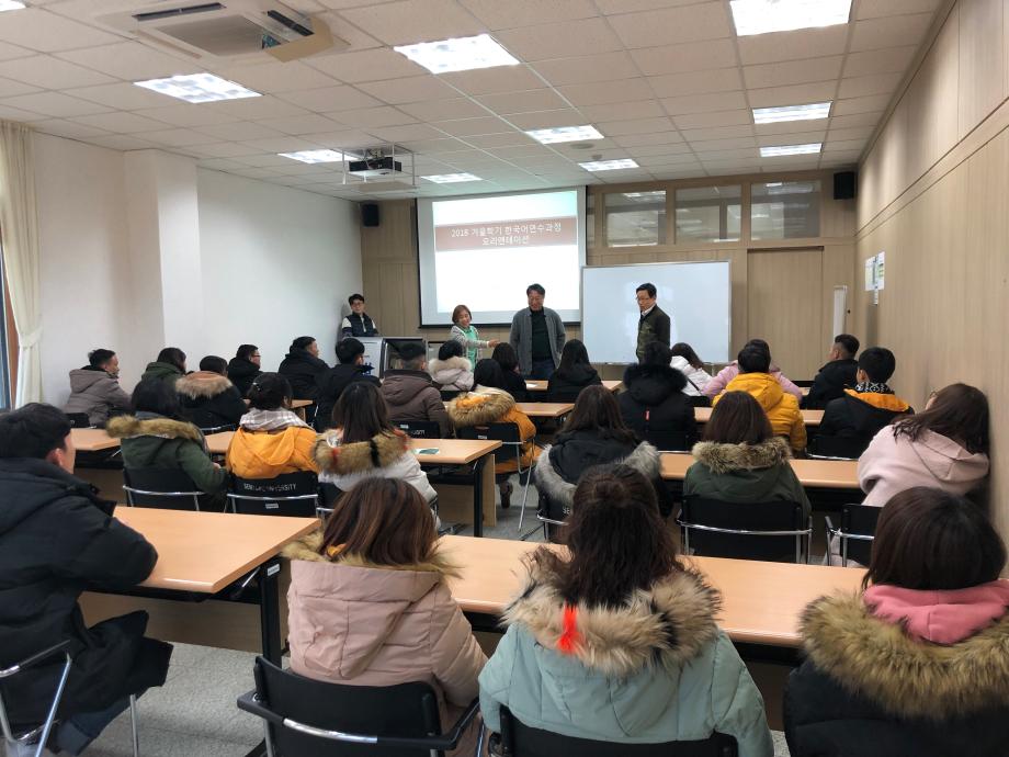 본문 시작 2018 겨울학기 신입 연수생 오리엔테이션 국제교육원 5010 2018-12-07 2018 겨울학기 신입 연수생 오리엔테이션 목록 이전2018 가을학기 한국어 연수과정 수료식 다음 2018 겨울학기 한국어연수생 개강식 담당부서 : 국제교육원 담당자 : - 연락처 : 043-649-1185 최종수정일 : 2024-10-26 만족도조사 만족도 조사 이 페이지에서 제공하는 정보에 대하여 만족하시나요? 매우만족 만족 보통 불만족 매우불만족