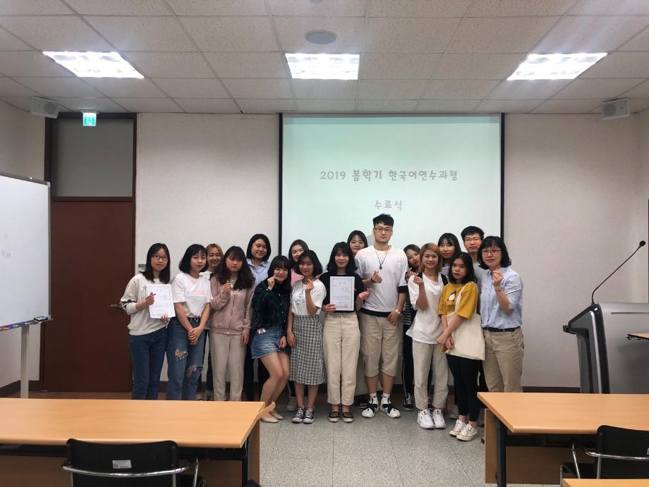 본문 시작 2019 봄학기 한국어연수과정 수료식 국제교육원 4581 2019-05-23 2019 봄학기 한국어연수과정 수료식 목록 이전제7회 유학생의 날 다음 2019 여름학기 한국어연수과정 개강식 담당부서 : 국제교육원 담당자 : - 연락처 : 043-649-1185 최종수정일 : 2024-10-26 만족도조사 만족도 조사 이 페이지에서 제공하는 정보에 대하여 만족하시나요? 매우만족 만족 보통 불만족 매우불만족