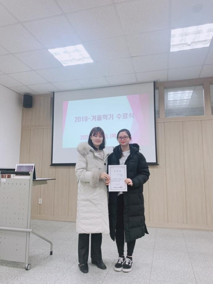 본문 시작 2019-겨울학기 수료식 국제교육원 4164 2020-02-20 2019-겨울학기 수료식 목록 이전2019-겨울학기 한국어 연수생 설 맞이 간담회 다음 2020-봄학기 한국어연수생 수료식 담당부서 : 국제교육원 담당자 : - 연락처 : 043-649-1185 최종수정일 : 2024-10-26 만족도조사 만족도 조사 이 페이지에서 제공하는 정보에 대하여 만족하시나요? 매우만족 만족 보통 불만족 매우불만족