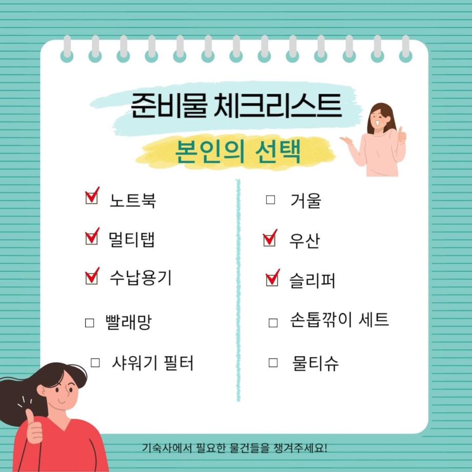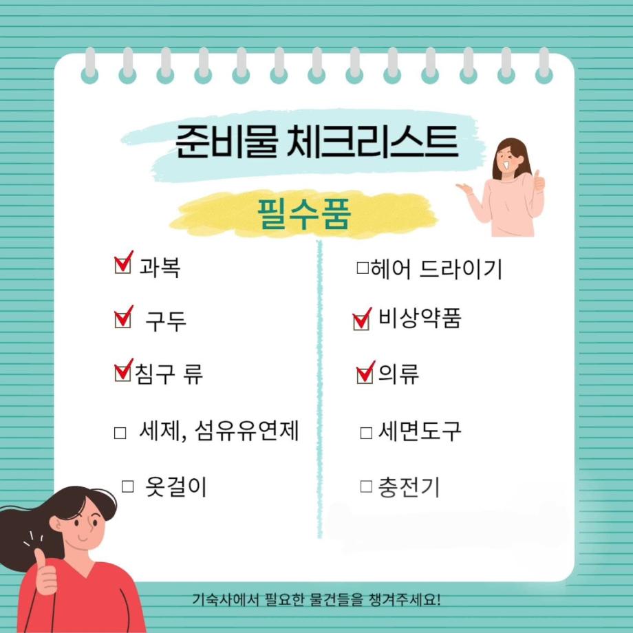 기숙사 준비물 체크리스트