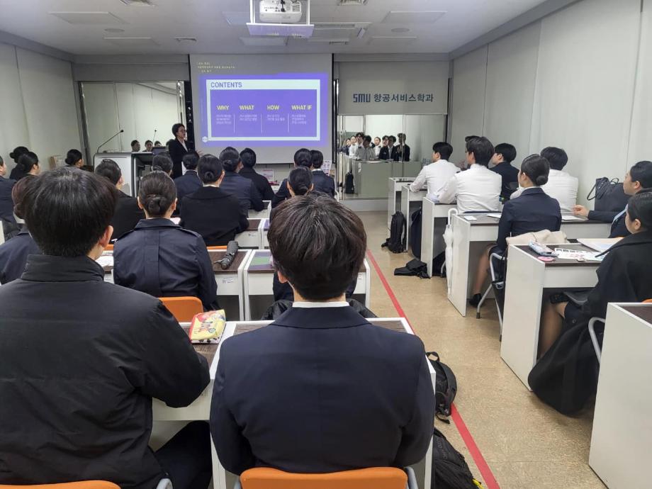 이번 특강을 통해 항공서비스학과 신입생들은 자신의 강점을 부각시킬 수 있는 이미지를 갖출 수 있는 좋은 기회가 되었다고 합니다.
