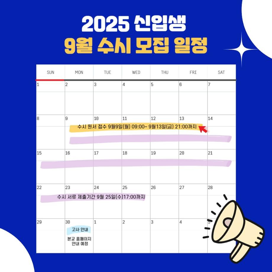 ➡️수시 원서접수: 09.09(월)09:00 ~ 09.13(금)21:00까지