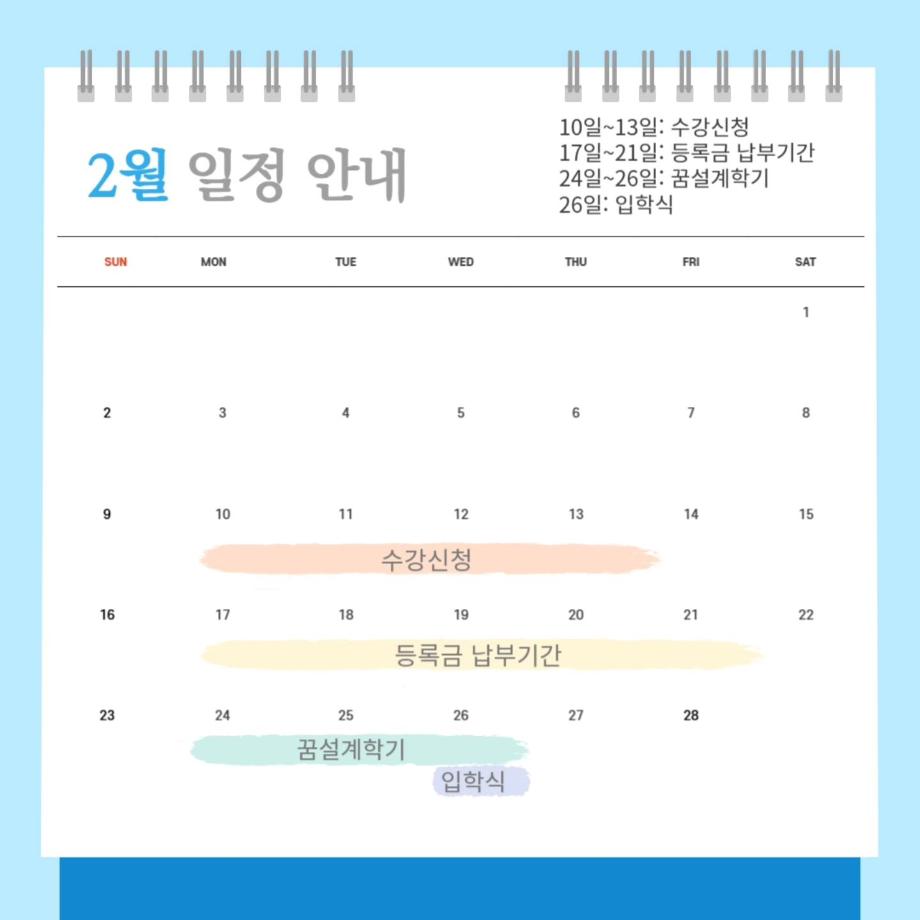 2월에는 수강신청과 등록금 납부, 꿈설계학기, 입학식이 있습니다😄