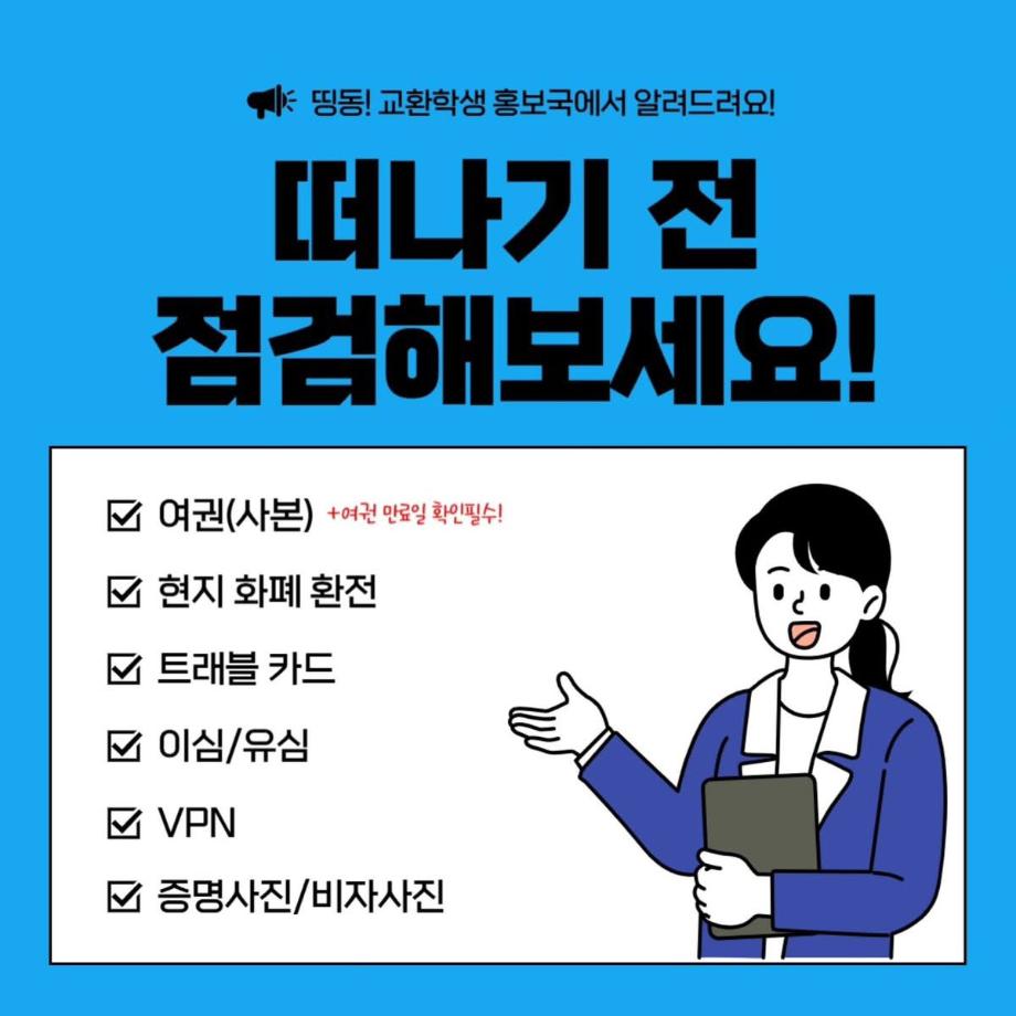 본문 시작 홈으로 커뮤니티 학과소개 입학정보 교과과정 커뮤니티 홈페이지가이드 포토갤러리 SNS 소통 공간 포토갤러리 공지사항 동아리 포토갤러리 페이스북 트위터 프린트 교환학생 체크리스트 항공서비스학과 4136 2025-08-12 안녕하십니까 세명대학교 항공서비스학과 온라인 홍보국 💙푸르미르💙입니다. 교환학생을 가기전 현지에서 꼭 필요한 물건들을 체크해야겠죠?😁 꼭 필요한 물품들을 정리해보았으니 많은 도움이 되길 바랍니다 ! 소중한 꿈을 품고 그 누구보다 높이 오를 여러분을 저희 "푸르미르" 가 항상 응원하겠습니다 ✈💙 궁금한 사항이 있으시다면 언제든지 SNS로 연락 주십시오 💬 #세명대학교 #항공서비스학과 #세명대 #항공과 #푸르미르 #교환학생 목록 이전💙에어로케이 객실승무원 취업💙 다음 🧡제주항공 객실승무원 취업🧡
