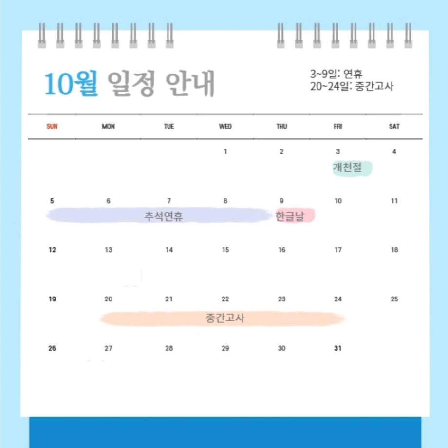 본문 시작 홈으로 커뮤니티 학과소개 입학정보 교과과정 커뮤니티 홈페이지가이드 포토갤러리 SNS 소통 공간 포토갤러리 공지사항 동아리 포토갤러리 페이스북 트위터 프린트 10월 다이어리 항공서비스학과 3732 2025-10-06 안녕하십니까 세명대학교 항공서비스학과 온라인 홍보국 💙푸르미르💙입니다. 10월에는 추석연휴와 중간고사가 있습니다! 확인하시고 일정에 착오 없으시길 바라겠습니다 😊 즐거운 연휴 보내세요🙇♂️ 소중한 꿈을 품고 그 누구보다 높이 오를 여러분을 저희 "푸르미르" 가 항상 응원하겠습니다 ✈💙 궁금한 사항이 있으시다면 언제든지 SNS로 연락 주십시오 💬 #세명대학교 #항공서비스학과 #세명대 #항공과 #푸르미르 #다이어리 목록 다음 제주항공 에듀윙 Advanced class 다음 가을 맞이 일상 사진