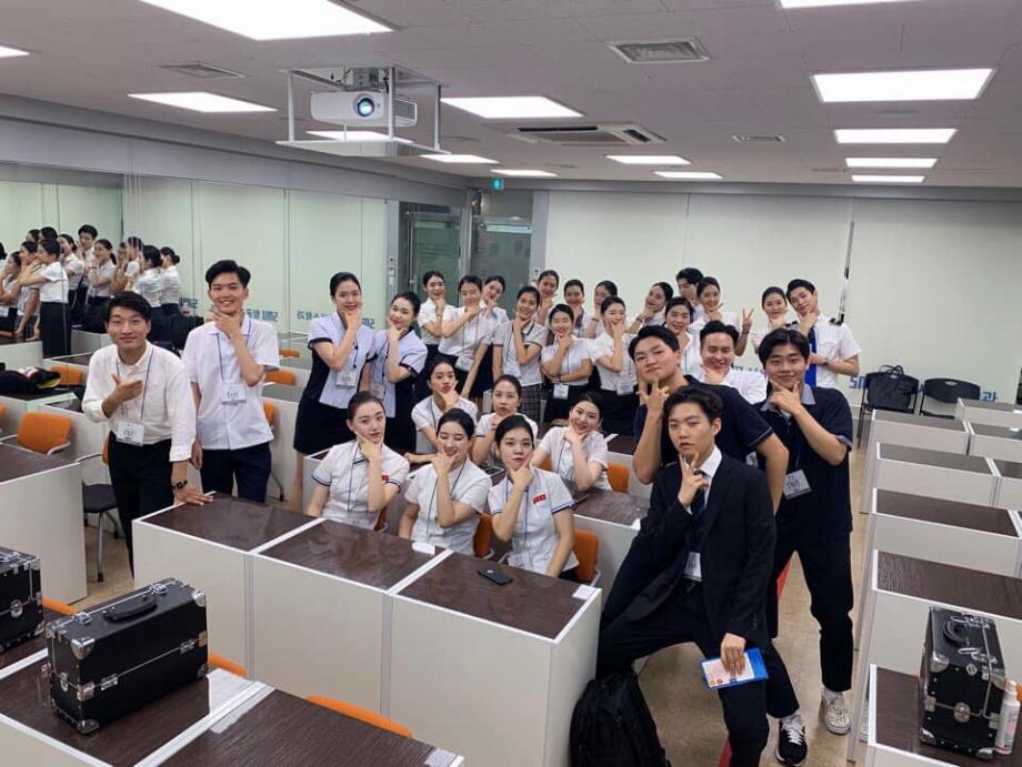 1부는 사회과학관에서 조별로 예선모의면접, 식음료서비스실습과 승객안전브리핑, 헤어두와 메이크업, 워킹과 인사연습 등 실제 재학생들이 듣는 수업을 입시생분들에게 보여드리고 참여해볼 수 있는 프로그램을 진행하였습니다