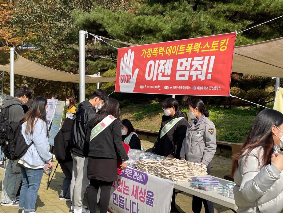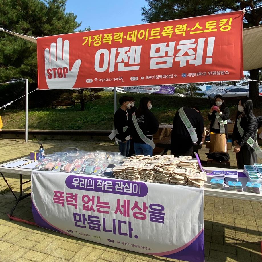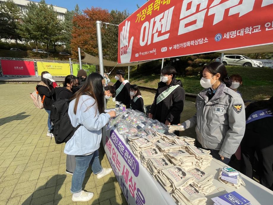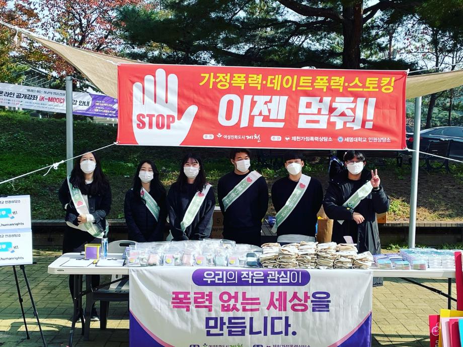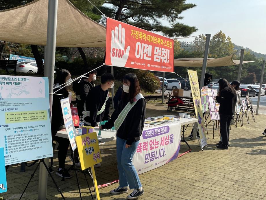 본문 시작 교내 폭력예방 캠페인 진행 CHARM케어상담센터 3628 2021-10-27 - 2021. 10. 26(화) - 학생회관 앞 폭력예방 캠페인 진행 - 인권상담소 인권서포터즈 / 제천 가정폭력상담소 / 제천 여성청소년과 목록 이전2021학년도 건강상담의 날 "자살예방교육"(10.26) 실시 다음 2021학년도 2학기 코로나-19마음치료 힐링프로그램 담당부서 : CHARM케어상담센터 담당자 : - 연락처 : 043-649-1789 최종수정일 : 2024-10-26 만족도조사 만족도 조사 이 페이지에서 제공하는 정보에 대하여 만족하시나요? 매우만족 만족 보통 불만족 매우불만족