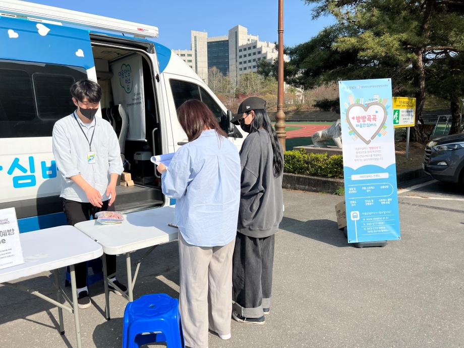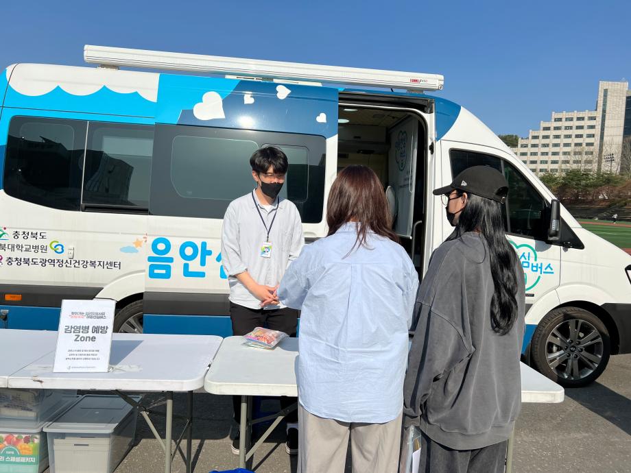본문 시작 2022학년도 1학기 청년 대상 "방방곡곡" 마음안심버스 운영 CHARM케어상담센터 3835 2022-05-06 2022학년도 1학기 청년 대상 "방방곡곡" 마음안심버스 운영(22.04.20) 목록 이전2022학년도 건강상담의 날 "자살예방교육"(03.24) 다음 2022학년도 건강상담의 날 "자살예방교육"(05.11) 담당부서 : CHARM케어상담센터 담당자 : - 연락처 : 043-649-1789 최종수정일 : 2024-10-26 만족도조사 만족도 조사 이 페이지에서 제공하는 정보에 대하여 만족하시나요? 매우만족 만족 보통 불만족 매우불만족