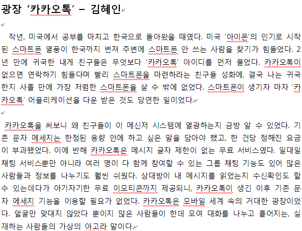 오늘 준비한 기사는 김혜인 기자의 칼럼 <카카오톡 탈출기>입니다. 김혜인 기자는 카톡을 하지 않습니다. 기사가 오라온다는 소식을 전하려고 오랜만에 문자메시지를 써봤습니다. 왜 김 기자는 카토을 쓰지 않는걸까요?