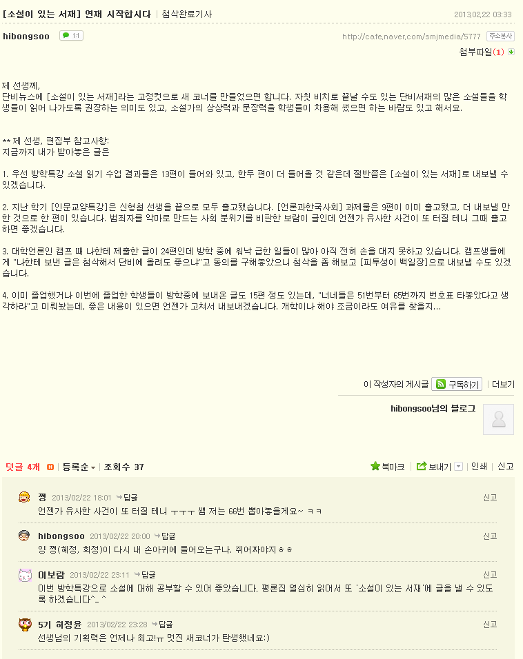 <단비뉴스>에 올라오는 기사의 원본과 최종본은 얼마나 차이날까요? <단비TV>의 영상은 어떻게 수정되었을까요? 교수님들이 어떻게 기사와 영상을 수정하셨는지 배우고 싶으면 이곳 "단비뉴스 편집실"에 자주 들어오세요. 첨삭한 원본과 수정본, 그리고 교수님들의 코멘트를 보실 수 있습니다.