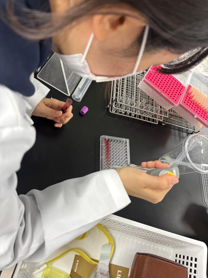 본문 시작 혈구계산판 임상병리학과 860 2025-11-19 적혈구와 백혈구가 잘 보이는 희석 배수와 계단 희석, 두 가지 방법으로 카운트를 진행하였습니다. 이를 통해 계단 희석 방법을 숙달하고 보다 정확한 카운트를 수행할 수 있으며, 두 방법 간의 오차 정도도 확인할 수 있었습니다 목록 이전CBC 검사 다음 ESR 검사 담당부서 : 임상병리학과 담당자 : - 연락처 : 043-649-1537 최종수정일 : 2024-10-26 만족도조사 만족도 조사 이 페이지에서 제공하는 정보에 대하여 만족하시나요? 매우만족 만족 보통 불만족 매우불만족