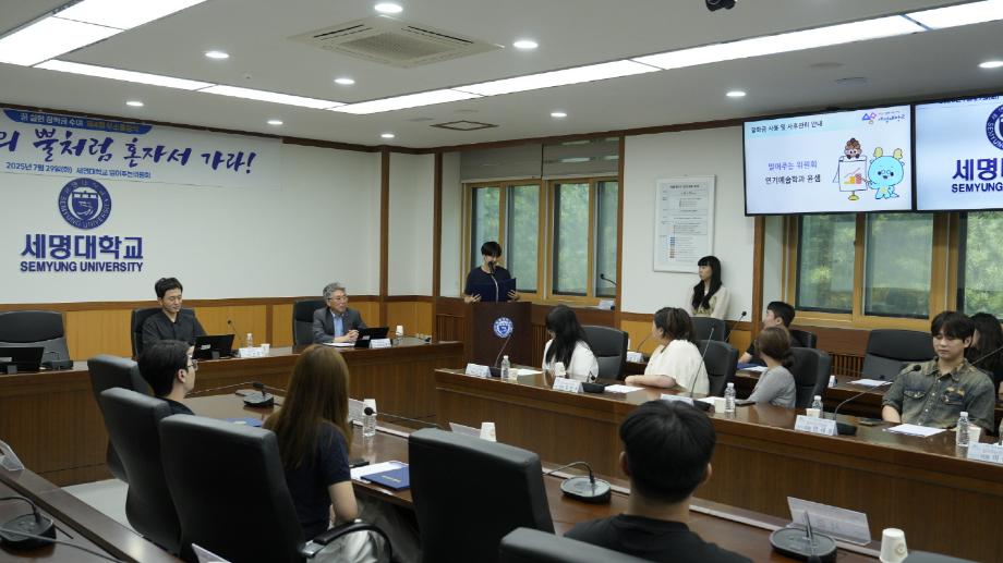 본문 시작 Photo SMU 세명소개 입학/취업 대학/대학원 학사지원 대학생활 연구/산학 기관/시설 SMU Story 소통·공감 학교기업 홈페이지가이드 학생활동 News@SMU 공지사항 보도자료 Photo SMU Media SMU 민송백일장 해카톤 경진대회 학생활동 페이스북 트위터 프린트 밀어주는 위원회 제4회 무소출정식 홍보센터 2796 2025-07-29 밀어주는 위원회 꿈 실현 장학금 수여 제4회 무소출정식 목록 이전2025 자기설계 해외배낭연수 발대식 다음 2025 제10기 세명대학교 하계 해외봉사단 발대식 담당부서 : 홍보센터 담당자 : 홍보센터 연락처 : 043-649-1175 최종수정일 : 2024-10-26 만족도조사 만족도 조사 이 페이지에서 제공하는 정보에 대하여 만족하시나요? 매우만족 만족 보통 불만족 매우불만족
