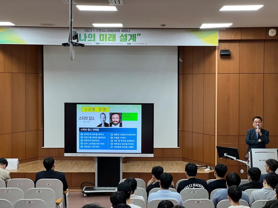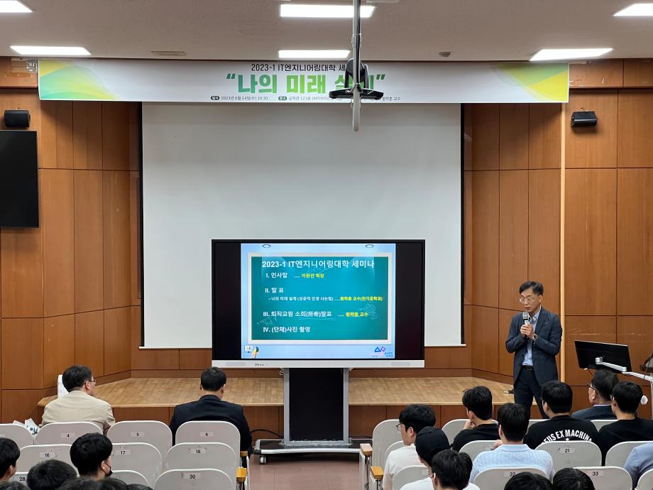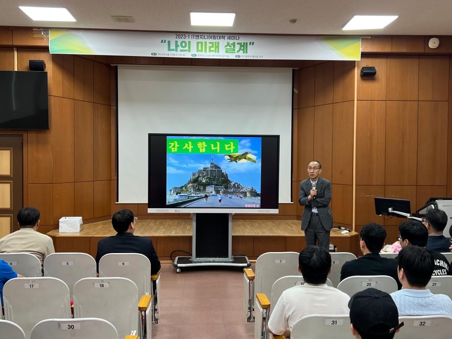 본문 시작 홈으로 커뮤니티 대학소개 학과소개 입학안내 커뮤니티 홈페이지가이드 포토갤러리 대학소식 학과소식 자료실 포토갤러리 포토갤러리 페이스북 트위터 프린트 2023-1학기 학생과 함께하는 세미나 개최 IT엔지니어링대학 2609 2023-06-15 IT엔지니어링대학에서는 재학생들의 학습역량 강화 및 대학 생활 만족도 제고를 위하여 '학생과 함께하는 세미나'를 2023년 6월 14일(수) 공학관 123호에서 개최하였다. 이번 세미나는 '나의 미래 설계 (성공하는 삶을 위하여)' 주제로 황락훈(전기공학과) 교수님이 발표를 하였으며, 학생들에게 경험담과 앞으로의 미래 사회에서 공과대학 학생으로서의 비전을 알 수 있는 좋은 시간이 되 목록 이전제1회 청소년 창의융합(AI-STEAM)행사 참여 다음 2023-1학기 학생과 함께하는 세미나 개최 담당부서 : AI융합대학 담당자 : - 연락처 : 043-649-7422 최종수정일 : 2024-10-26 만족도조사 만족도 조사 이 페이지에서 제공하는 정보에 대하여 만족하시나요? 매우만족 만족 보통 불만족 매우불만족