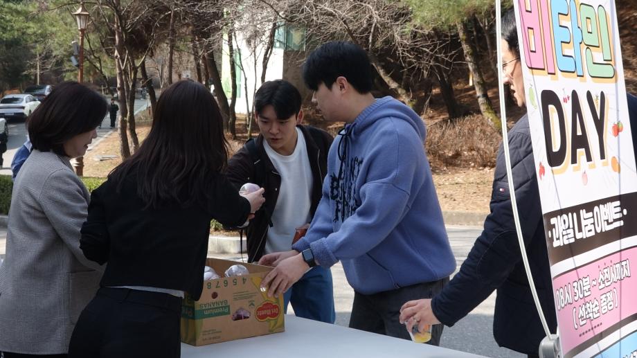본문 시작 홈으로 커뮤니티 대학소개 학과소개 입학안내 커뮤니티 홈페이지가이드 포토갤러리 대학소식 학과소식 자료실 포토갤러리 포토갤러리 페이스북 트위터 프린트 비타민데이 IT엔지니어링대학 110 2026-03-24 재학생을 위한 14차 과일나눔 이벤트 '비타민 데이' 3월 24일(화), 학생회관 출입구에서 진행됩니다. 목록 이전새해 복 많이 받으세요 다음 IT단과대를 알려드립니다 (3월) 담당부서 : AI융합대학 담당자 : - 연락처 : 043-649-7422 최종수정일 : 2024-10-26 만족도조사 만족도 조사 이 페이지에서 제공하는 정보에 대하여 만족하시나요? 매우만족 만족 보통 불만족 매우불만족