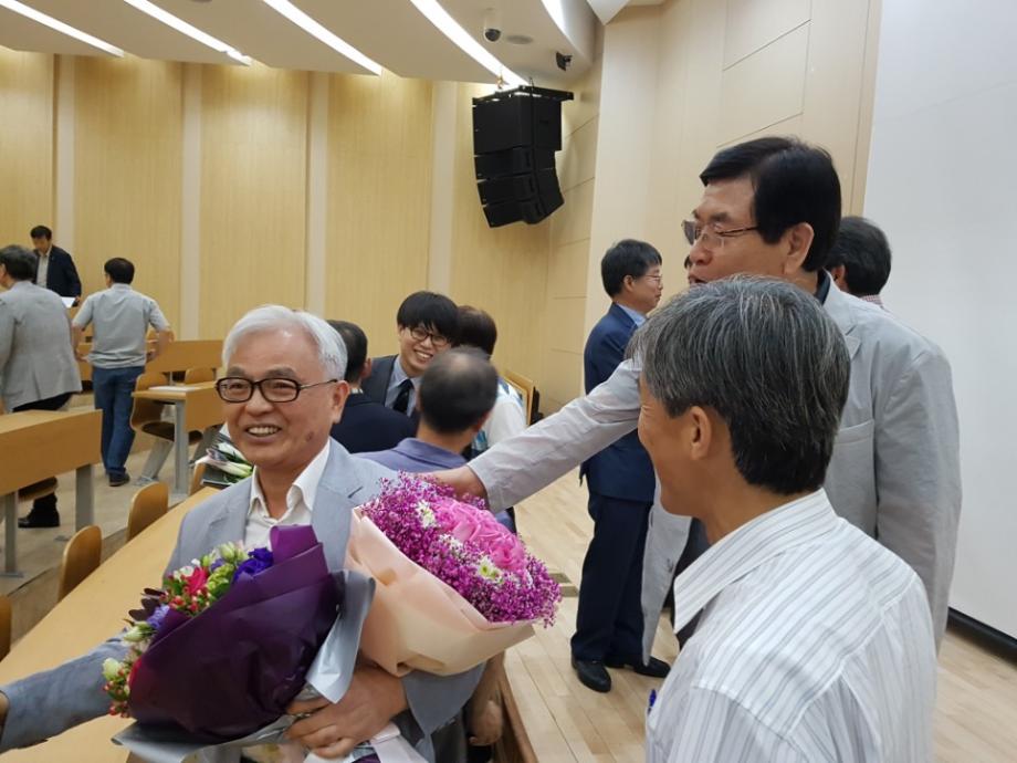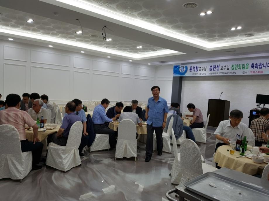 2018학년도 8월 정년퇴임하시는 교수님 2분을 모시고, IT엔지니어링대학 교원들이 코렉스부페에서 퇴임기념행사를 하였습니다.