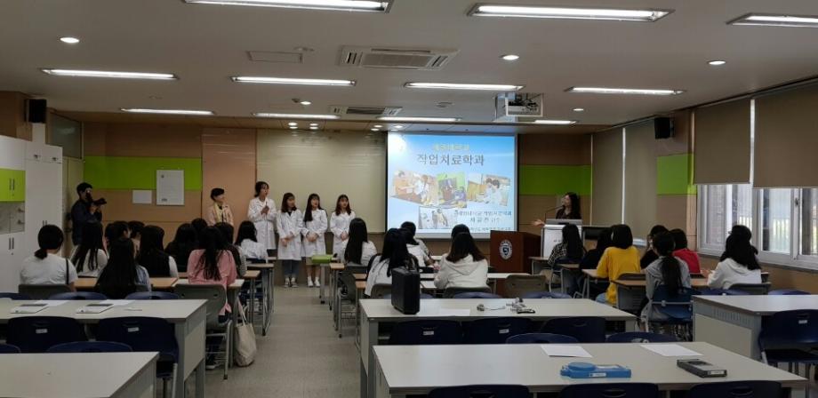 본문 시작 홈으로 커뮤니티 학과소개 진로 및 취업 학과과정 커뮤니티 SNS 홈페이지가이드 학과 소식 및 행사 학과공지 학과 소식 및 행사 대학생활 엿보기 어쩌다 출근 챌린지 학생회 동아리 통학버스 시간표 학과 소식 및 행사 페이스북 트위터 프린트 5월 11일(금) 의림여중 전공체험 작업치료학과 7841 2018-05-29 5월 11일(금)에 의림여중 전공체험이 진행되었습니다.🤗 예쁘고 사랑스러운🌸의림여중 🌸28명의 학생이 작업치료학과를 찾아와주었습니다. 학과장 차유진 교수님의 작업치료학과 설명과 함께 3학년 재학생들의 도움으로 평가도구를 직접 체험해보는 기회와 학과 실습실 체험의 기회를 통하여 의림여중 학생들이 작업치료에 대하여 많은 것을 보고 배우는 뜻깊은 시간을 보냈습니다.👍 목록 이전2018 농촌봉사활동 다음 5.15 스승의날 행사 담당부서 : 작업치료학과 담당자 : - 연락처 : 043-649-1632 최종수정일 : 2024-10-26 만족도조사 만족도 조사 이 페이지에서 제공하는 정보에 대하여 만족하시나요? 매우만족 만족 보통 불만족 매우불만족
