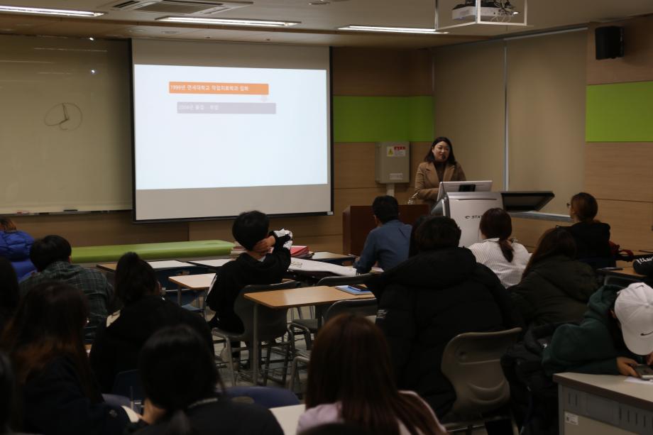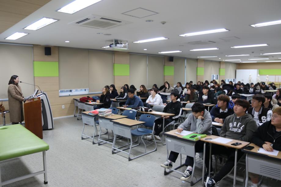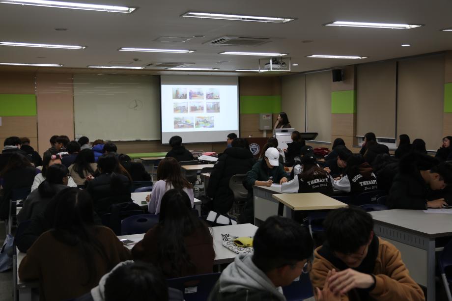 본문 시작 홈으로 커뮤니티 학과소개 진로 및 취업 학과과정 커뮤니티 SNS 홈페이지가이드 학과 소식 및 행사 학과공지 학과 소식 및 행사 대학생활 엿보기 어쩌다 출근 챌린지 학생회 동아리 통학버스 시간표 학과 소식 및 행사 페이스북 트위터 프린트 2018학년도 2차 학술특강 작업치료학과 6964 2018-11-07 11월 7일 1학년 재학생들을 대상으로 2차 학술특강이 진행 되었습니다. '작업치료사의 역량과 아동작업치료의 이해' 라는 주제로 황선미 원장님께서 특강하셨습니다. 학생들이 전공에 대한 이해화 궁극적인 취업에 있어서 본인들이 갖추어야 할 역량과 그 입지를 확인하여 전문 작업치료사의 초석을 다지는 좋은 시간이였습니다. 목록 이전2018 국가고시 합격 응원 행사 다음 2018-2학기 종강총회 담당부서 : 작업치료학과 담당자 : - 연락처 : 043-649-1632 최종수정일 : 2024-10-26 만족도조사 만족도 조사 이 페이지에서 제공하는 정보에 대하여 만족하시나요? 매우만족 만족 보통 불만족 매우불만족