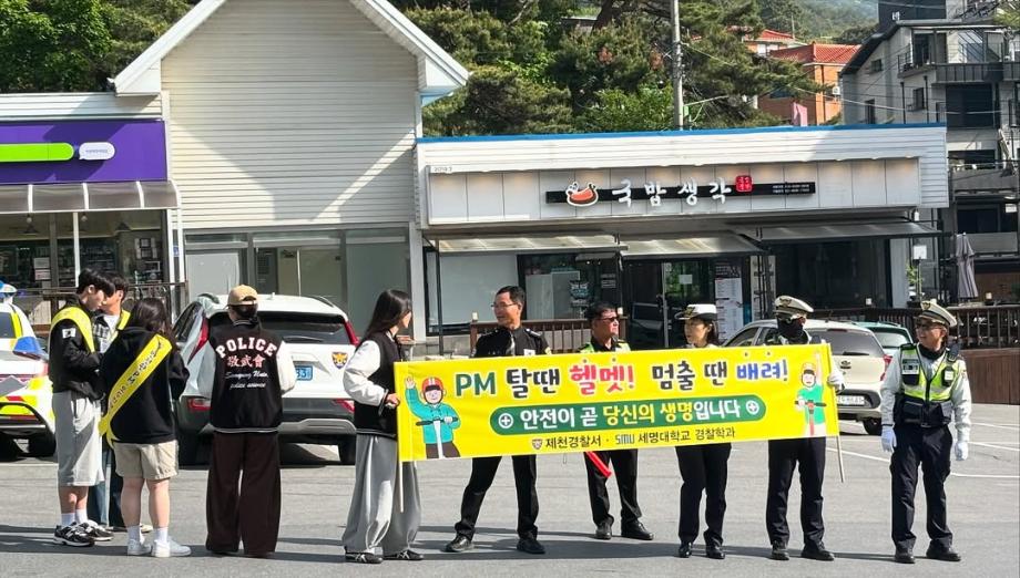 본문 시작 홈으로 커뮤니티 학과소개 교수소개 학과과정 커뮤니티 홈페이지가이드 포토갤러리 학부공지 학과일정 포토갤러리 학생회 동아리 포토갤러리 페이스북 트위터 프린트 제천경찰서 합동 개인형 이동장치 안전운행 캠페인 경찰학과 1797 2025-05-22 안녕하십니까 세명대학교 경찰학과 제23대 학생회 ‘개화’입니다. 지난 5월 8일, 제천경찰서와 함께 개인형 이동장치 안전운행 캠페인을 진행하였습니다. 개인형 이동장치의 운행을 안전하게 하도록 해당 포스터 및 팜플렛 등을 세명대학교 곳곳에서 학우분께 전달하고 알리는 활동을 하였습니다. 이번 캠페인에 참여하신 모든 학우분과 경찰관분께 감사의 말씀 전해드립니다.🍀 기타 문의 사항은 연락해 주시면 답변해 드리겠습니다. 목록 이전2025 경찰학과 체전 다음 단양중학교 대상 경찰학과 전공체험 만족도조사 만족도 조사 이 페이지에서 제공하는 정보에 대하여 만족하시나요? 매우만족 만족 보통 불만족 매우불만족
