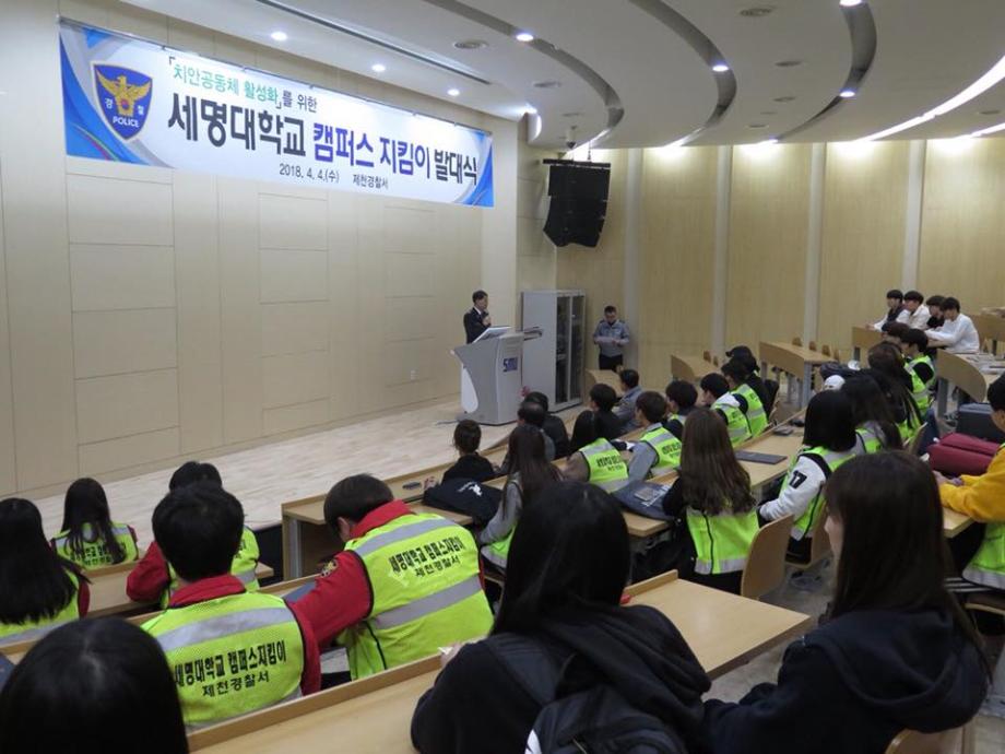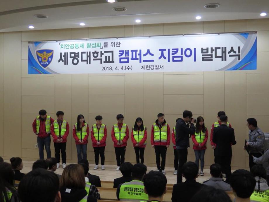 본문 시작 홈으로 커뮤니티 학과소개 교수소개 학과과정 커뮤니티 홈페이지가이드 포토갤러리 학부공지 학과일정 포토갤러리 학생회 동아리 포토갤러리 페이스북 트위터 프린트 2018 제천경찰서와 함께하는 캠퍼스 지킴이 발대식 경찰행정학과 6400 2018-04-04 캠퍼스 지킴이 발대식이 있었습니다. 제천경찰서와 세명대 경찰행정학과가 함께하여 제천의 취약한 일대를 순찰하게 되었습니다. 앞으로의 지킴이 활동이 기대가 됩니다. 목록 이전2018 꿈 설계학기 OT 다음 2018 경찰행정학과 MT 만족도조사 만족도 조사 이 페이지에서 제공하는 정보에 대하여 만족하시나요? 매우만족 만족 보통 불만족 매우불만족