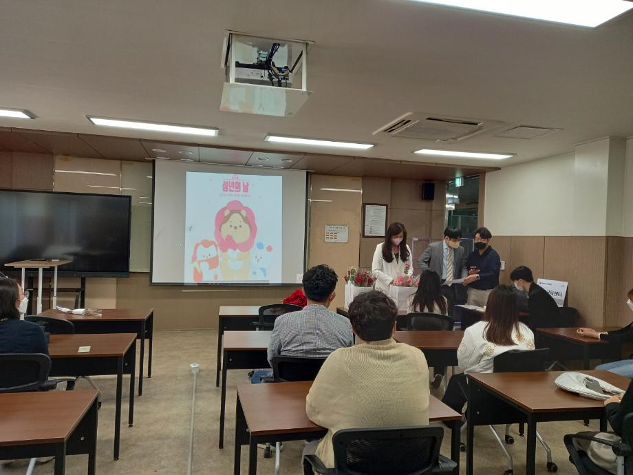본문 시작 홈으로 커뮤니티 학과소개 학생진로 교과과정 커뮤니티 학과 SNS 홈페이지가이드 학과 갤러리 공지사항 대학원 학과 갤러리 학과 이야기 동아리 학생회 학과 갤러리 페이스북 트위터 프린트 경영학과 성년의 날 행사 경영학과 2402 2022-05-18 성년의 날은 성년이 되는 것을 기념하여 정한 날. 우리나라에서는 만 19세가 되는 사람을 대상으로 행사를 실시한다. 5월 셋째 월요일이다. 곽지영 교수님과 함상우 교수님께서 성년의 날 주인공인 학생들에게 장미꽃을 전달했다. 성년의 날 성년이 된 여러분 축하드립니다 목록 이전경영학과 학생 전0영, 배0민, 이0빈, 신0애 학생이 한국생산관리학회의 춘계학술대회에서 장려상을 수상 다음 경영학과 스승의 날 행사 담당부서 : 경영학과 담당자 : - 연락처 : 043-649-1766 최종수정일 : 2024-10-26 만족도조사 만족도 조사 이 페이지에서 제공하는 정보에 대하여 만족하시나요? 매우만족 만족 보통 불만족 매우불만족