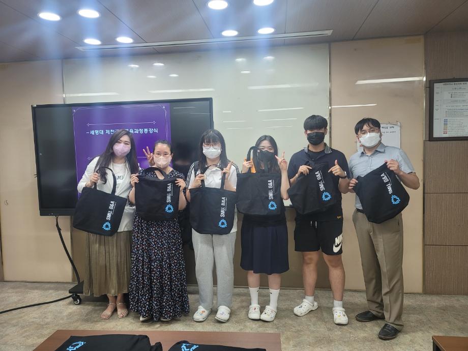 본문 시작 홈으로 커뮤니티 학과소개 학생진로 교과과정 커뮤니티 학과 SNS 홈페이지가이드 학과 갤러리 공지사항 대학원 학과 갤러리 학과 이야기 동아리 학생회 학과 갤러리 페이스북 트위터 프린트 2022학년도 제천 공동교육과정 종강식 경영학과 3035 2022-07-14 2022.7.12 화요일 세명대 경영학과에서 진행한 제천공동교육과정 종강식이 열렸다. 그동안 코스에 참여한 학생들과 교수님들간 끝인사를 나누고 경영학과 에코백 등 소정의 기념품을 전달했다. 목록 이전2022학년도 경영프로젝트 회계스타K [불4조] 다음 2022학년도 경영프로젝트 회계스타K [세명회담] 담당부서 : 경영학과 담당자 : - 연락처 : 043-649-1766 최종수정일 : 2024-10-26 만족도조사 만족도 조사 이 페이지에서 제공하는 정보에 대하여 만족하시나요? 매우만족 만족 보통 불만족 매우불만족