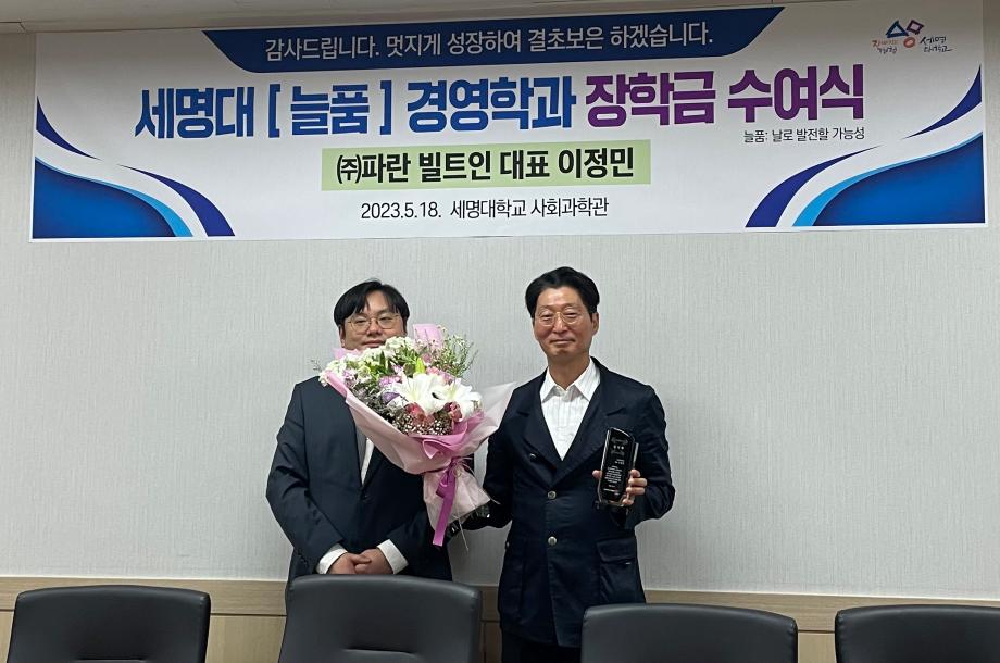 본문 시작 홈으로 커뮤니티 학과소개 학생진로 교과과정 커뮤니티 학과 SNS 홈페이지가이드 학과 갤러리 공지사항 대학원 학과 갤러리 학과 이야기 동아리 학생회 학과 갤러리 페이스북 트위터 프린트 (주) 파란빌트인, [늘품] 경영학과 장학금 수여식 경영학과 2564 2023-05-31 5월 18일 목요일에 [늘품] 장학금 수여식이 진행되었습니다. ㈜파란빌트인(대표 이정민)은 세명대 경영학과 학생들의 교육과 연구 여건 개선을 위해 장학금 1천500만원과 65인치 TV, 태블릿, 공기청정기 등의 물품(1천650만원 상당)을 기탁하셨습니다! 목록 이전2023학년도 스승의 날 행사 2편 다음 [늘품] 경영학과 1학기 기말고사 커피 이벤트 🌈 담당부서 : 경영학과 담당자 : - 연락처 : 043-649-1766 최종수정일 : 2024-10-26 만족도조사 만족도 조사 이 페이지에서 제공하는 정보에 대하여 만족하시나요? 매우만족 만족 보통 불만족 매우불만족
