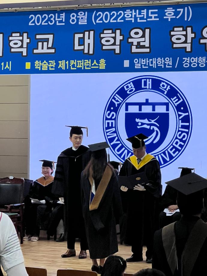 본문 시작 홈으로 커뮤니티 학과소개 학생진로 교과과정 커뮤니티 학과 SNS 홈페이지가이드 학과 갤러리 공지사항 대학원 학과 갤러리 학과 이야기 동아리 학생회 학과 갤러리 페이스북 트위터 프린트 [대학원] 2023년도 후기 (석, 박사) 학위 수여 경영학과 5221 2023-08-09 2023. 8. 9(수) 학술관에서 2022년도 후기 석, 박사 학위 수여식이 진행되었습니다. 행사에는 사회과학대학 학장님이신 김계수 교수님, 대학원 경영학과 주임 교수님이신 함상우 교수님께서 참석하셔서 축하해주셨습니다. 목록 이전[경영학과] 제천여고 지도 다음 [경영학과] 2023년도 후기 학위 수여식(졸업식) 담당부서 : 경영학과 담당자 : - 연락처 : 043-649-1766 최종수정일 : 2024-10-26 만족도조사 만족도 조사 이 페이지에서 제공하는 정보에 대하여 만족하시나요? 매우만족 만족 보통 불만족 매우불만족