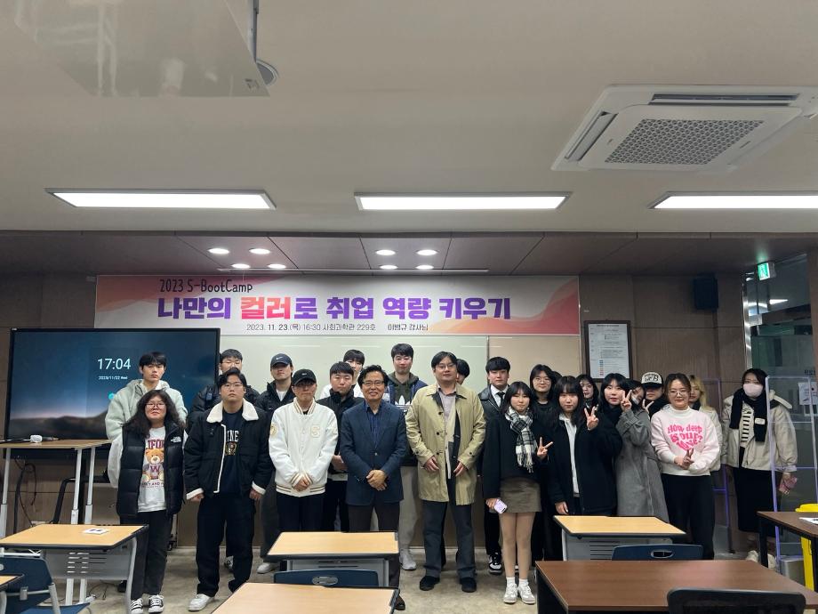 본문 시작 홈으로 커뮤니티 학과소개 학생진로 교과과정 커뮤니티 학과 SNS 홈페이지가이드 학과 갤러리 공지사항 대학원 학과 갤러리 학과 이야기 동아리 학생회 학과 갤러리 페이스북 트위터 프린트 [경영학과] 부트캠프 특강 경영학과 2869 2023-12-12 2023년 11.23(목) 사회과학관 229호에서 특강을 진행하였습니다. 특강은 이병규 강사님께서 '나만의 컬러로 취업 역량 키우기'라는 주제로 학생들에게 좋은 강의를 해주셨습니다. 이 특강을 들은 학생들 모두 자신만의 컬러를 찾아 취업 역량을 키우는 유익한 시간이 되었길 바라겠습니다. 목록 이전[경영학과] 한국생산관리학회 우수발표 논문상 수상 다음 [경영학과] 유통 활성화 공모전 담당부서 : 경영학과 담당자 : - 연락처 : 043-649-1766 최종수정일 : 2024-10-26 만족도조사 만족도 조사 이 페이지에서 제공하는 정보에 대하여 만족하시나요? 매우만족 만족 보통 불만족 매우불만족