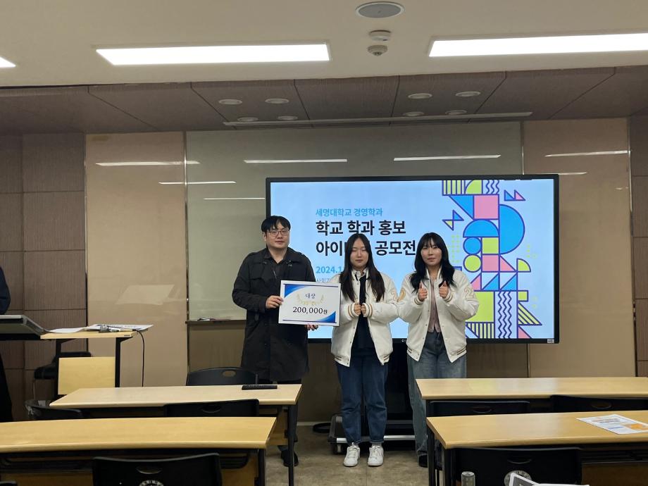 본문 시작 홈으로 커뮤니티 학과소개 학생진로 교과과정 커뮤니티 학과 SNS 홈페이지가이드 학과 갤러리 공지사항 대학원 학과 갤러리 학과 이야기 동아리 학생회 학과 갤러리 페이스북 트위터 프린트 [경영학과] 학과, 학교 홍보 아이디어 공모전 수상 경영학과 2116 2024-11-26 학과, 학교 홍보 아이디어 공모전이 11월 25일 (월)에 진행되었습니다. - 수상 결과 대상: 김채은, 이수빈 (22) 최우수상: 이예진, 조윤아 (22) 우수상: 이소명, 이유민 (22) 수상을 축하드립니다. 목록 이전[경영학과] 학회장 선거 안내 다음 [경영학과] 제 3회 경영 그래미어워드 담당부서 : 경영학과 담당자 : - 연락처 : 043-649-1766 최종수정일 : 2024-10-26 만족도조사 만족도 조사 이 페이지에서 제공하는 정보에 대하여 만족하시나요? 매우만족 만족 보통 불만족 매우불만족