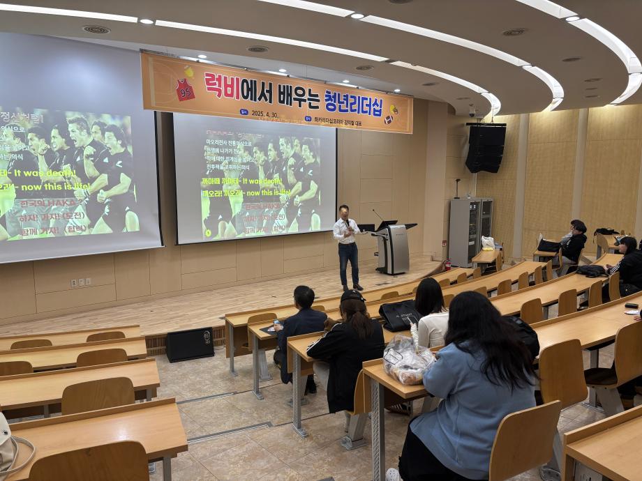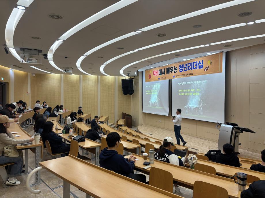 본문 시작 홈으로 커뮤니티 학과소개 학생진로 교과과정 커뮤니티 학과 SNS 홈페이지가이드 학과 갤러리 공지사항 대학원 학과 갤러리 학과 이야기 동아리 학생회 학과 갤러리 페이스북 트위터 프린트 [경영학과] 김익철 하카리더십코리아 대표 학술특강 경영학과 1580 2025-04-30 4월 30일에 [김익철 하카리더십코리아 대표의 “럭비에서 배우는 청년 리더십”] 경영학술특강이 진행되었습니다. 참여한 학생들에게 동기부여를 전하는 뜻깊은 시간이었습니다. 목록 이전[일반대학원 경영학과] 논문토론회 개최 다음 [경영학과] AI를 활용한 경영학과 홍보 콘텐츠 공모전 담당부서 : 경영학과 담당자 : - 연락처 : 043-649-1766 최종수정일 : 2024-10-26 만족도조사 만족도 조사 이 페이지에서 제공하는 정보에 대하여 만족하시나요? 매우만족 만족 보통 불만족 매우불만족