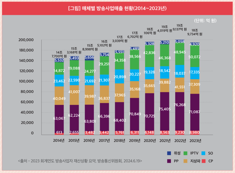 "세계시장에서 K-콘텐츠가 주목받고 있지만 국내 방송 산업은 위기를 맞고 있다. 시청률이 떨어지면서 주 수익원인 방송광고는 줄고, 경기 침체로 광고 시장 자체가 위축되고 있다. 증가세를 보이던 국내 드라마 제작 건수도 감소하는 가운데, 국내 방송사들의 경영 현황을 진단해 본다."