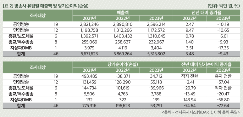 "2023년 방송 광고비는 전년 대비 17.7% 감소했다. 이에 따라 방송사 매출도 전년 대비 9.43% 감소했다. 예상보다 침체가 심했던 2023년 방송사 경영 결과를 분석해 보고 미래를 전망해 본다."
