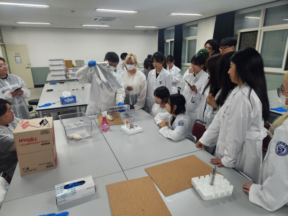본문 시작 홈으로 학과게시판 학과소개 교육과정 학과게시판 관련사이트 홈페이지가이드 포토갤러리 학과소식 포토갤러리 동아리 소개 포토갤러리 페이스북 트위터 프린트 2024여름방학비교과과정 진행 동물보건학과 1870 2024-07-30 2024년 하계방학 기간 동물보건학과 학생은? 임상병리학과 학생들과 실험동물기술원 시험을 위해 7월 8일부터 7월 12일까지 동물실험 법, 사육관리, 사료, 보정 등 다양하게 배웠습니다. 8월 3일에 진행되는 실험동물기술원 시험에서 좋은 결과 있길 바랍니다. 목록 이전시민과학자 2차 활동 다음 2024기업현장실습_에코팜 담당부서 : 동물보건학과 담당자 : - 연락처 : 043-649-1627 최종수정일 : 2024-10-26 만족도조사 만족도 조사 이 페이지에서 제공하는 정보에 대하여 만족하시나요? 매우만족 만족 보통 불만족 매우불만족