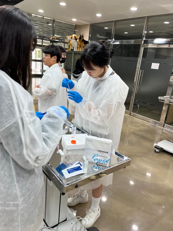 본문 시작 홈으로 학과게시판 학과소개 교육과정 학과게시판 관련사이트 홈페이지가이드 포토갤러리 학과소식 포토갤러리 동아리 소개 포토갤러리 페이스북 트위터 프린트 단양고등학교 동물바이오헬스학과 전공체험 동물바이오헬스학과 2002 2023-06-09 2023년 5월26일 단양고등학교 3학년 학생들이 동물바이오헬스학과에서 "바이러스 실험실 체험"이라는 주제로 체험과 토론을 진행했습니다. 많은 학생들이 실습 체험을 하면서 신속간이진단킷트의 원리를 경험하는 시간이 되었습니다 목록 이전동물바이오헬스학과 제천제일고등학교 전공체험(프리칼리지) 다음 제6회 보건바이오대학 학과홍보 UCC 공모전 수상 담당부서 : 동물보건학과 담당자 : - 연락처 : 043-649-1627 최종수정일 : 2024-10-26 만족도조사 만족도 조사 이 페이지에서 제공하는 정보에 대하여 만족하시나요? 매우만족 만족 보통 불만족 매우불만족
