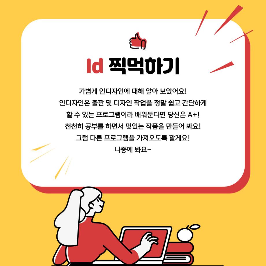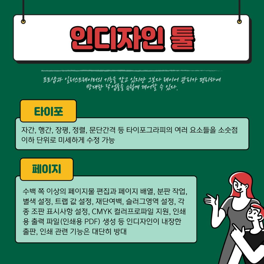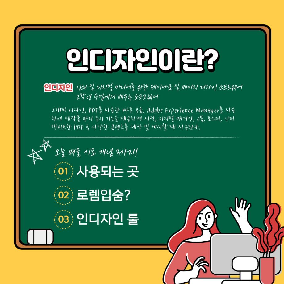 본문 시작 홈으로 학과자랑 학과소개 학과과정 시영소식 입학/취업 AI 학과자랑 SNS소통 홈페이지가이드 갤러리 학과자랑 갤러리 공모전 동아리 졸업전시회 갤러리 페이스북 트위터 프린트 예비 대학생을 위한 디자인 프로그램 설명 5탄 (인디자인) 시각영상디자인학과 2253 2022-02-13 2학년때 배우는 인디자인입니다. 목록 이전예비 대학생을 위한 디자인 프로그램 설명 4탄 (Html/Css) 다음 예비 대학생을 위한 디자인 프로그램 설명 6탄 (XD) 담당부서 : 시각영상디자인학과 담당자 : - 연락처 : 043-649-1726 최종수정일 : 2024-10-26 만족도조사 만족도 조사 이 페이지에서 제공하는 정보에 대하여 만족하시나요? 매우만족 만족 보통 불만족 매우불만족
