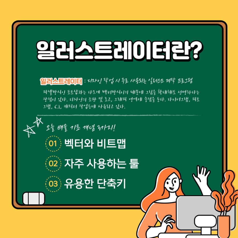 본문 시작 홈으로 학과자랑 학과소개 학과과정 시영소식 입학/취업 AI 학과자랑 SNS소통 홈페이지가이드 갤러리 학과자랑 갤러리 공모전 동아리 졸업전시회 갤러리 페이스북 트위터 프린트 예비 대학생을 위한 디자인 프로그램 설명 1탄 (일러스트레이터) 시각영상디자인학과 2304 2022-02-07 1학년때 배우는 디자인 툴 일러스트레이터입니다. 목록 이전AR/VR 연계전공 소개 카드뉴스 다음 예비 대학생을 위한 디자인 프로그램 설명 2탄 (포토샵) 담당부서 : 시각영상디자인학과 담당자 : - 연락처 : 043-649-1726 최종수정일 : 2024-10-26 만족도조사 만족도 조사 이 페이지에서 제공하는 정보에 대하여 만족하시나요? 매우만족 만족 보통 불만족 매우불만족
